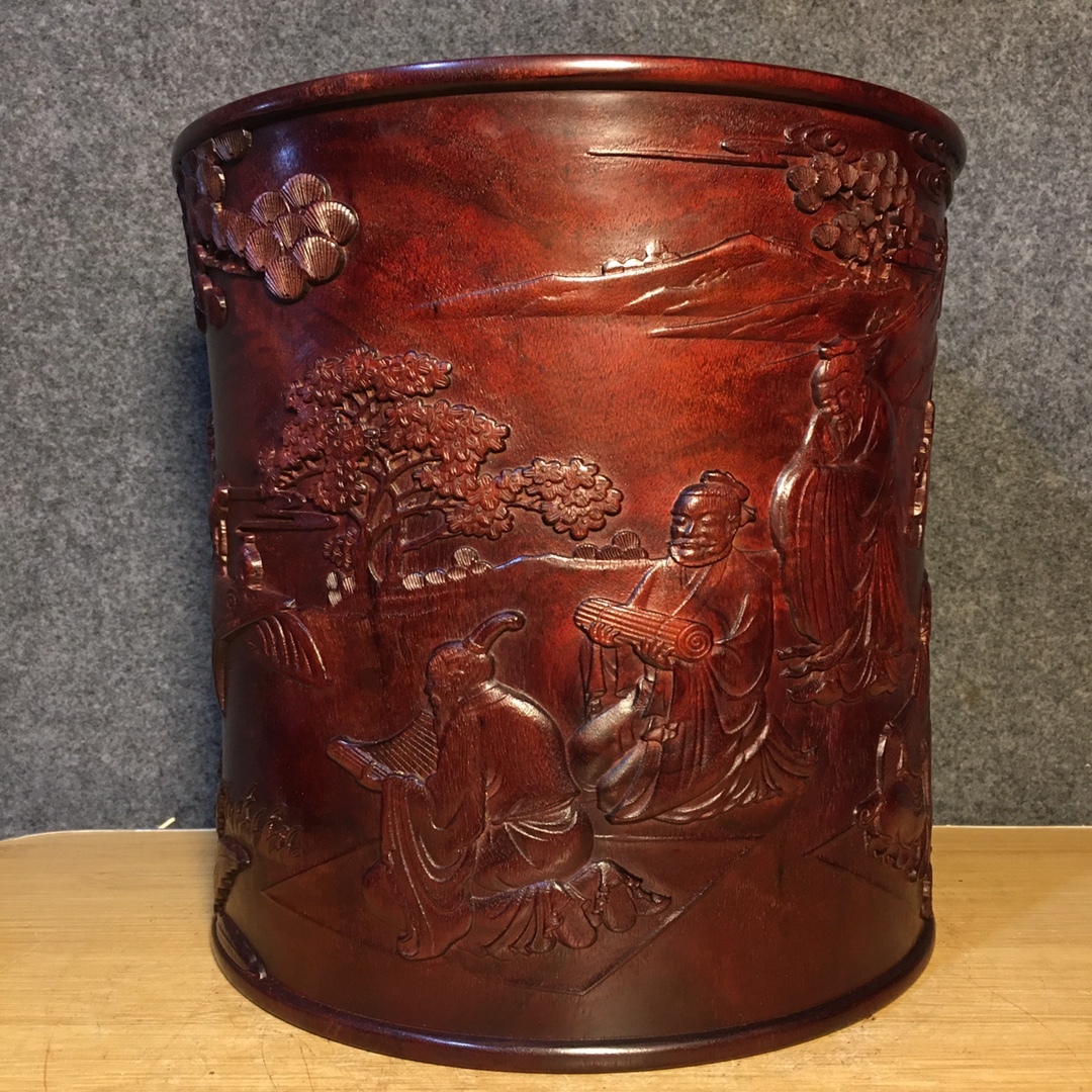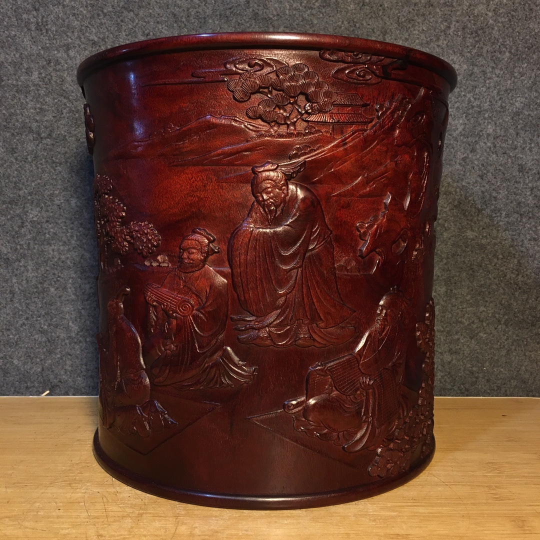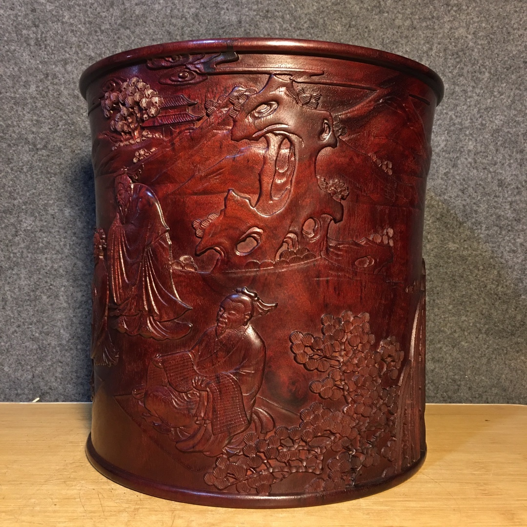 唐物 清 大葉黄花梨 彫刻 筆立て 筆道具 文房具 木製 極細工 中国古玩 骨董品 古美味 D611