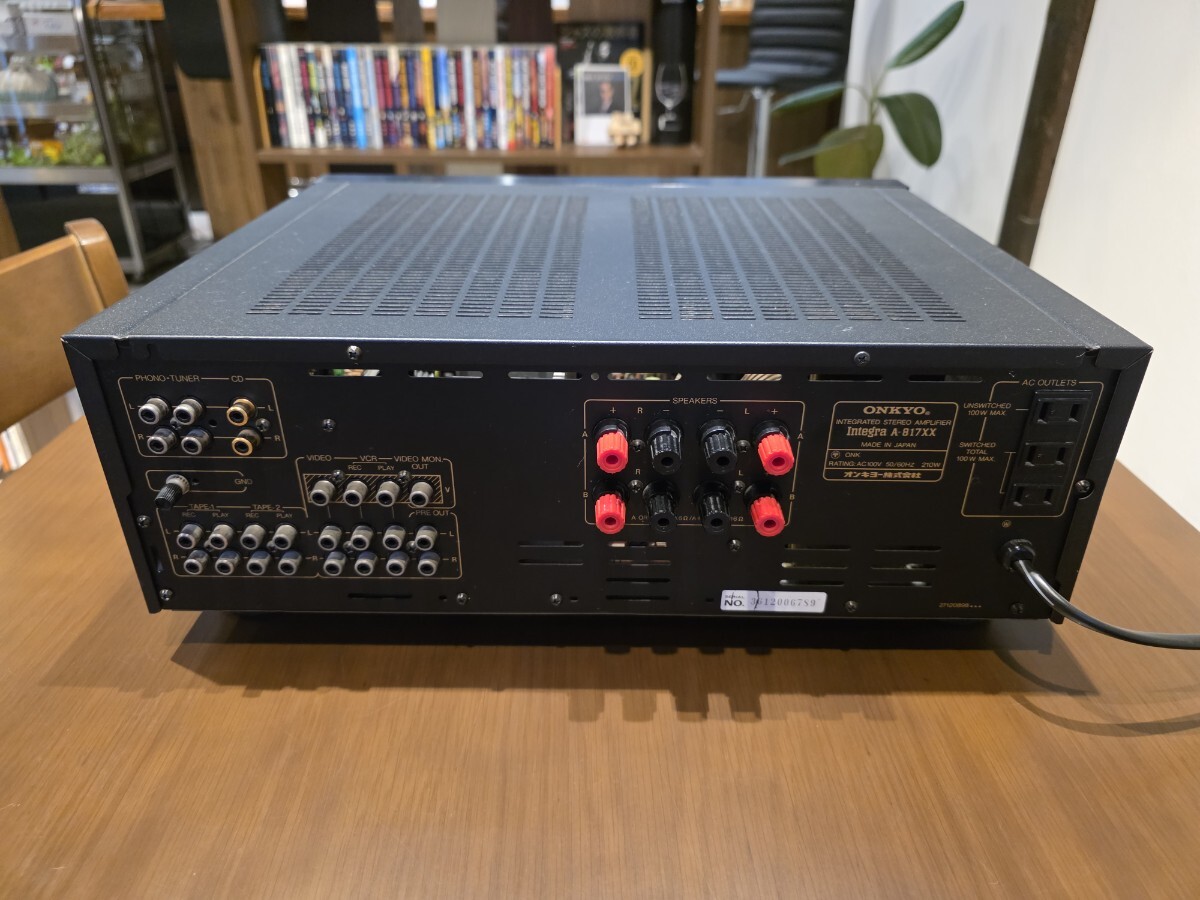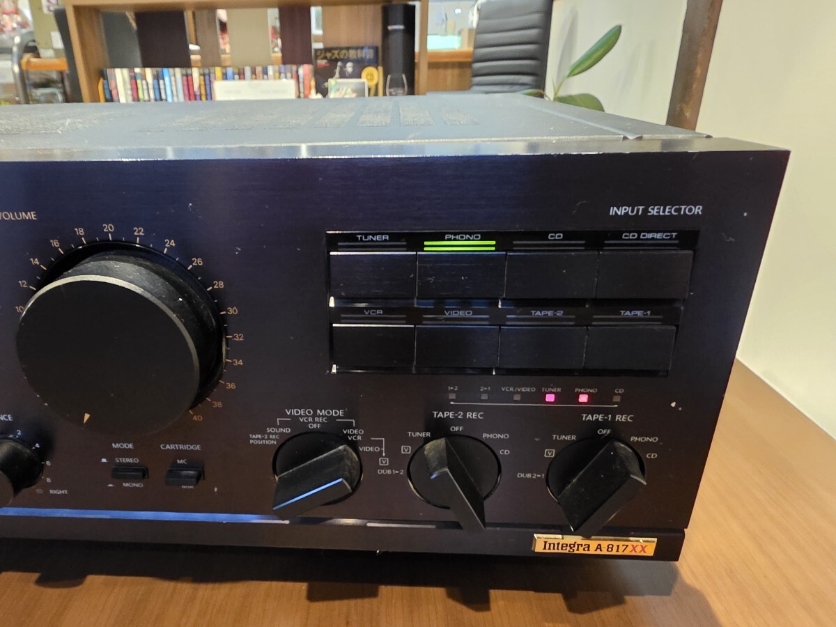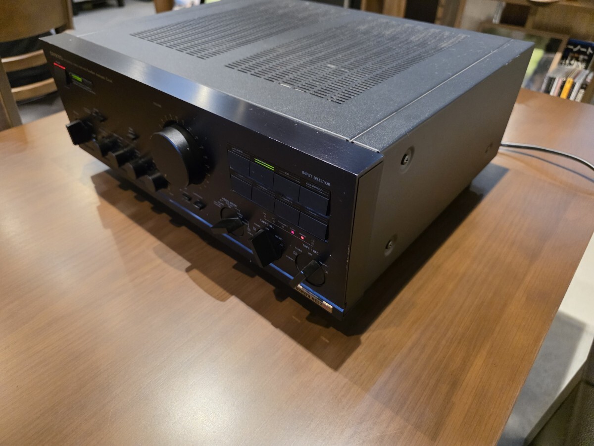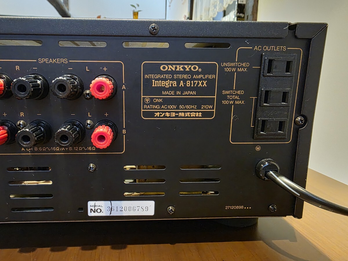 オンキヨーのステレオプリメインアンプIntegra A-817XXです。メ-カーにて修理済品です。残念ながらCD ダイレクトのみメーカーにも部品が無く不良のままですが、それ以外は良好です。1986 年の発売当時の定価は79,800円でした。梱包は丁寧に行います。往年の素晴らしアンプの演奏を手に入れて下さい。是非入札落札お願いします。ショップではありませんので消費税は不要です。