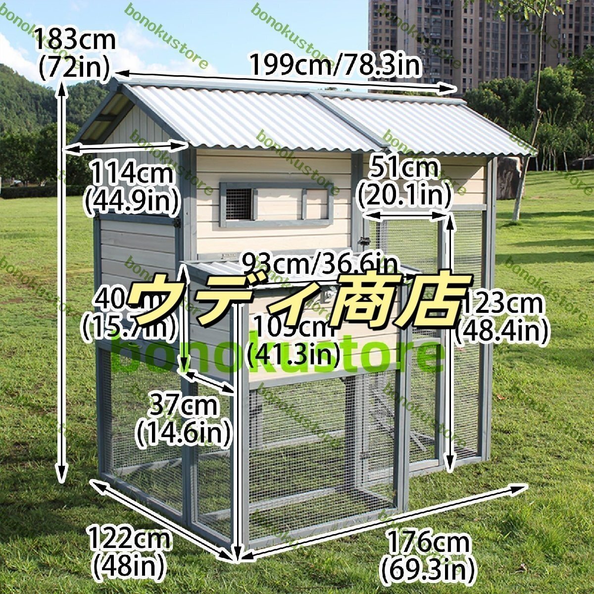 説明:屋外用ウサギ小屋は組み立てが簡単です。購入および使用中に問題が発生した場合は、いつでもご連絡ください。できるだけ早く返信いたします。仕様:1.素材:木材2.色:ライトグレー3.サイズ:199 X 122 X 183 cm(78.3 X 48 X 72インチ)梱包リスト:鶏小屋 x 1注意:手動測定のため、多少の誤差がある場合があります。実際の製品を参照してください。ご了承ください。各写真は実物で撮影されていますが、光、ディスプレイ、個人の色の違いにより、色の違いはわずかです。