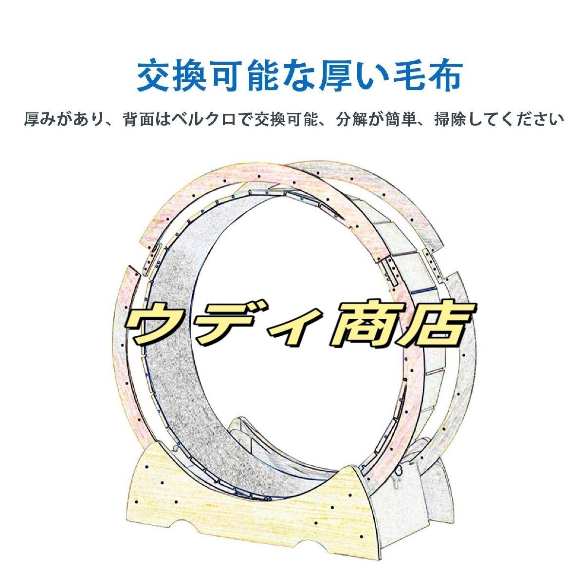 【環境保護素材】キャットホイール 内側の裏地は、お手入れが簡単な交換可能な厚手のブランケットを使用しています。猫回し車丸みを帯びた角、両面強化された硬度、滑らかで美しい表面。