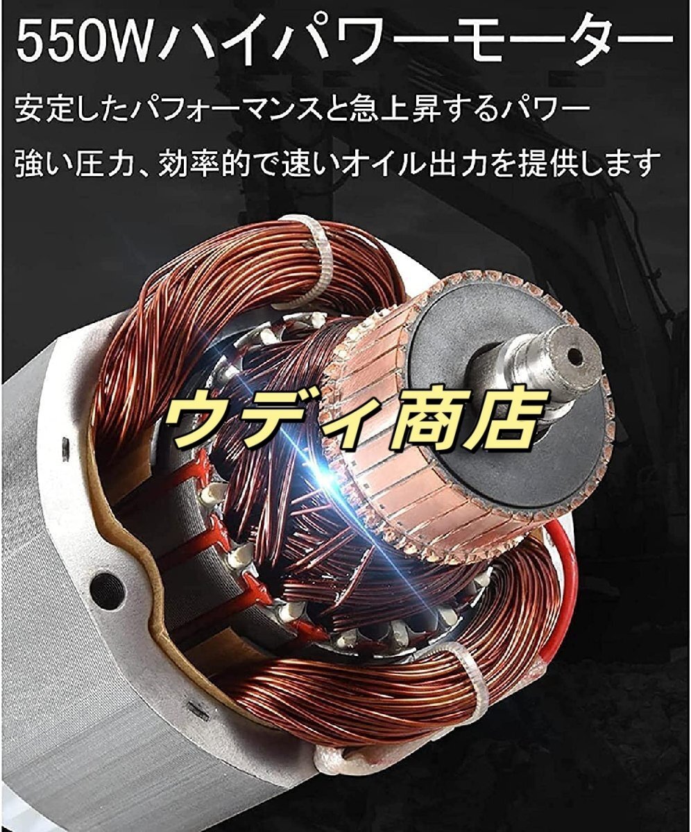 ? 合金チップ:工業用グレードの高硬度、強力な耐食性、優れた高圧耐性、頑丈さ、耐久性? 550W純銅モーター:強力な出力、迅速なオイル出力、透明な防爆チューブ、いつでもオイル量を簡単に確認可能? 大容量リチウム電池:電池寿命が長く、どこでも電源を探す手間が省け、電池