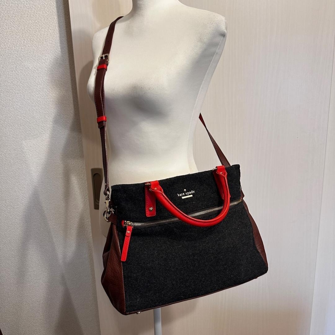 【kate spade】ウール×レザー ショルダーバッグ 2WAY / bg132