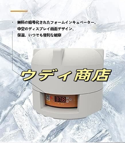 商品説明 商品説明 商品説明 ●【家族・教育インキュベーター】各種卵の保育に使用できます。 一度に6個の卵を入れることができます。 透明な窓ではっきりと観察できます。 ●【設定温度】卵の孵卵は主に温度によって決まります。 温度調節システムを内蔵しています。 温度表