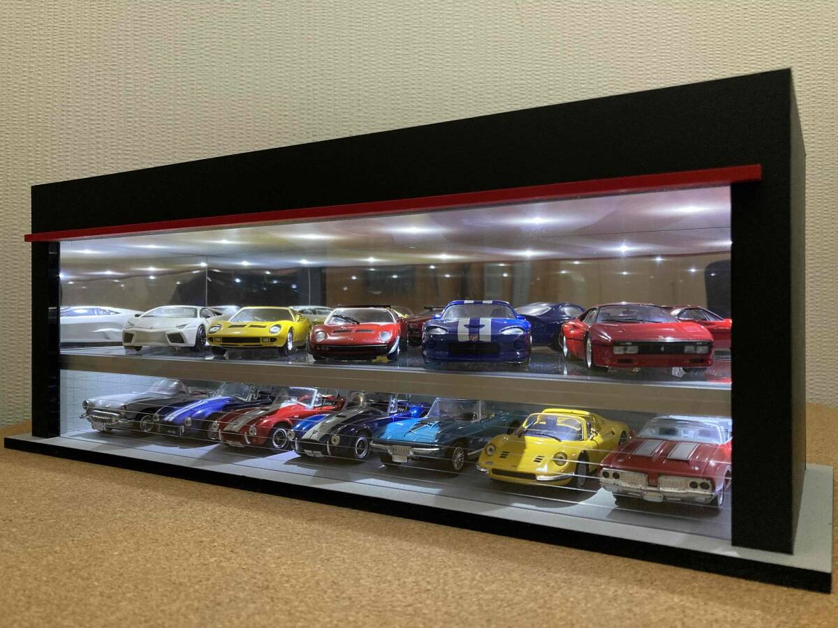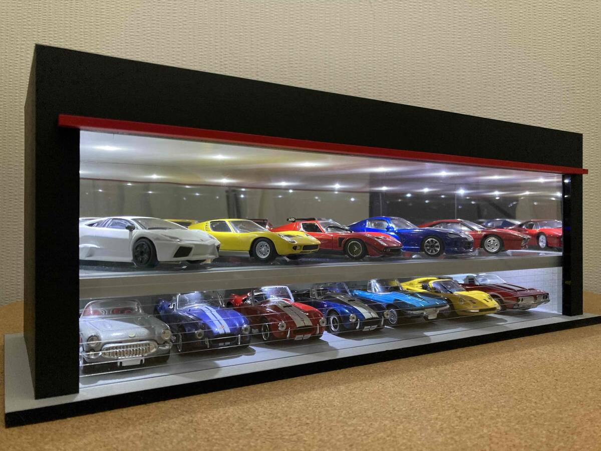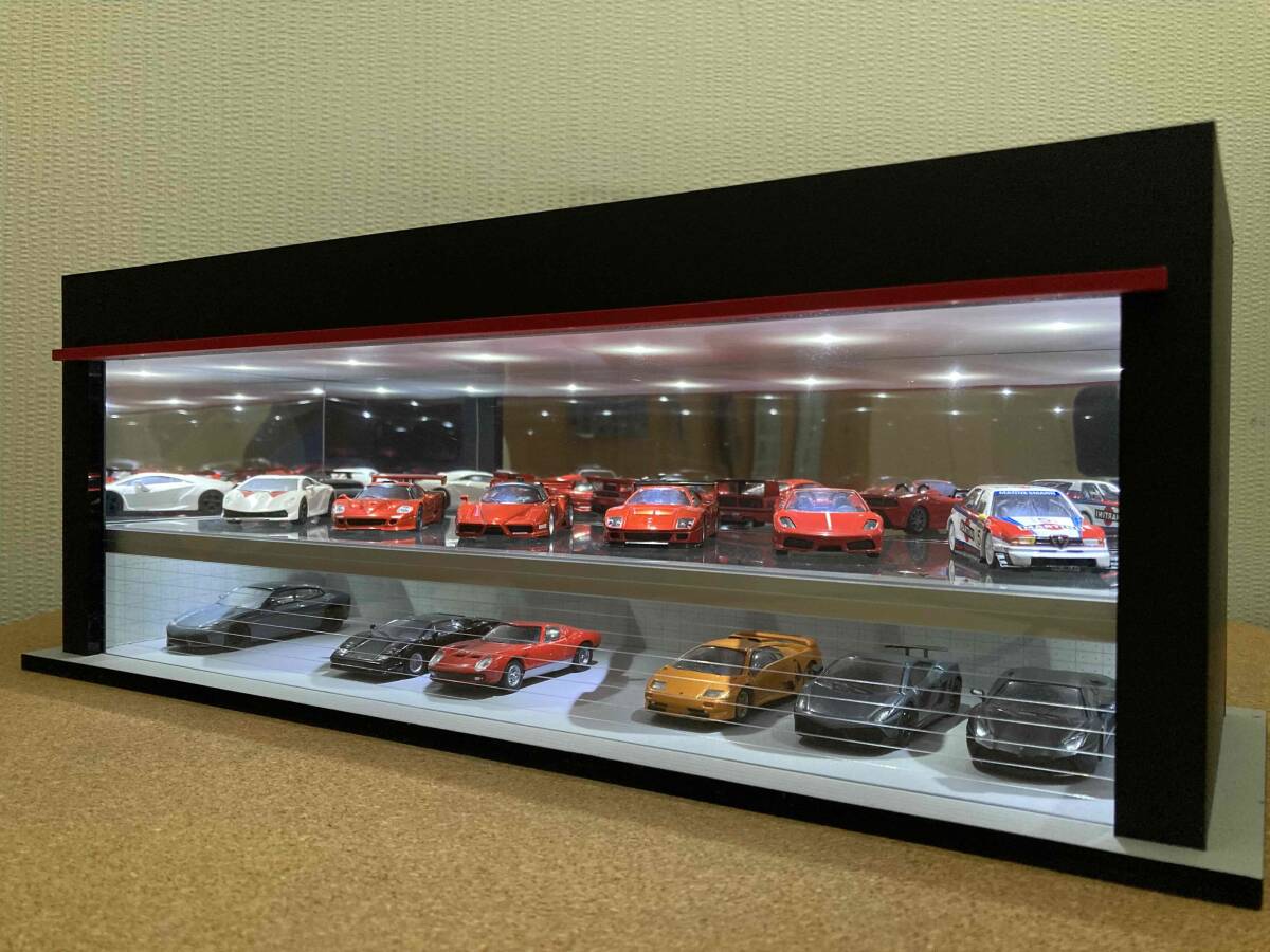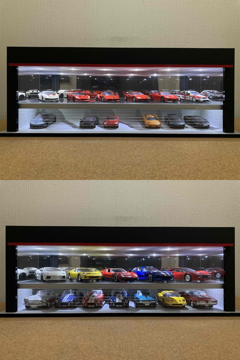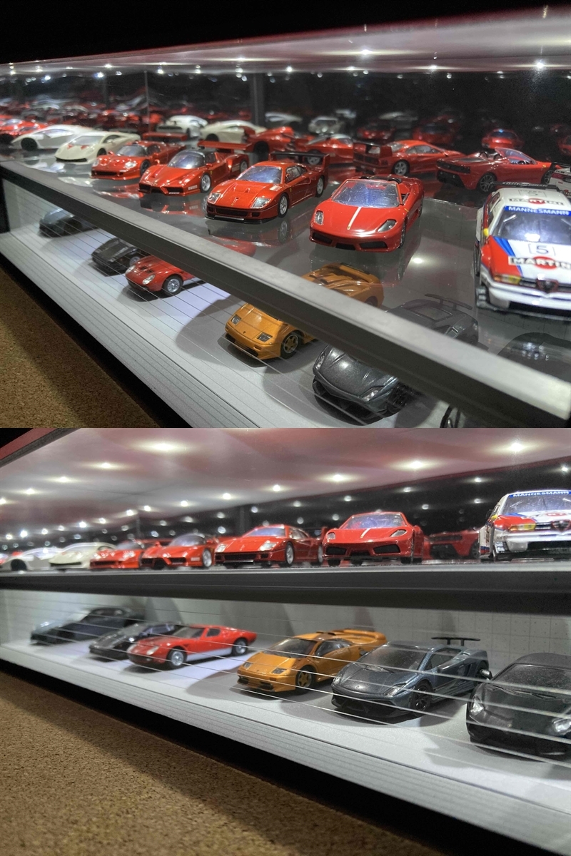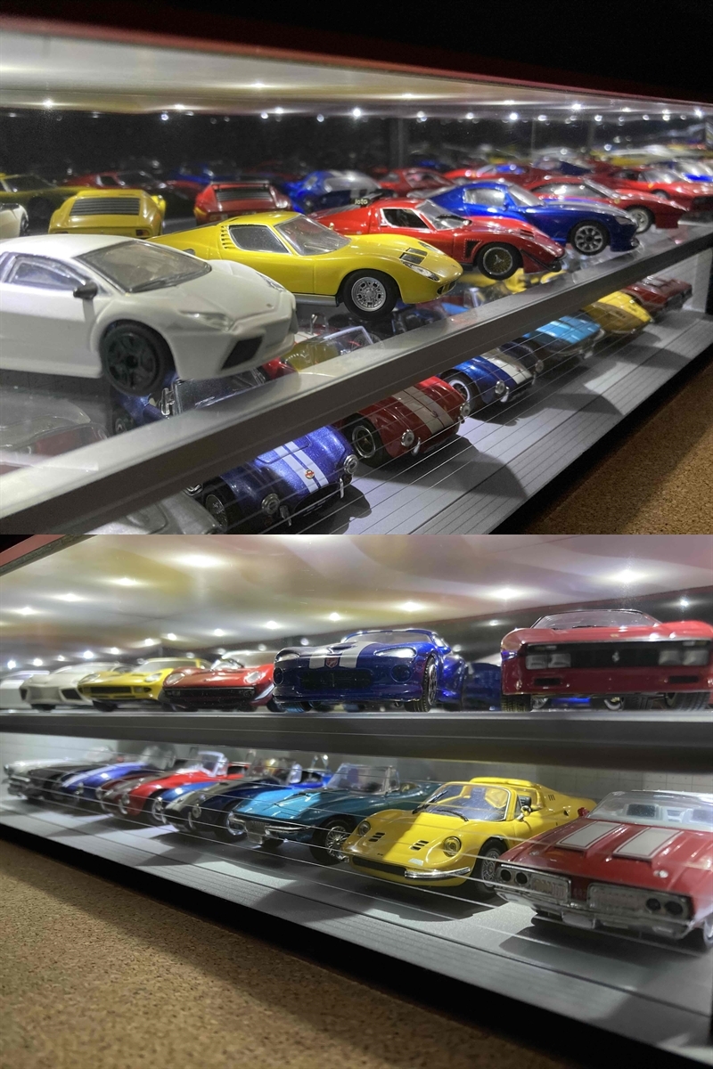 最大展示台数は1/64スケールの場合は18台で、1/43スケールの場合は12台になります。