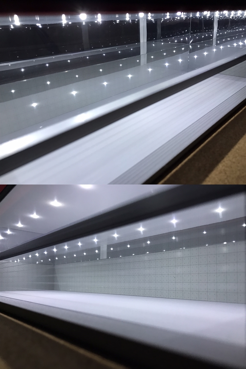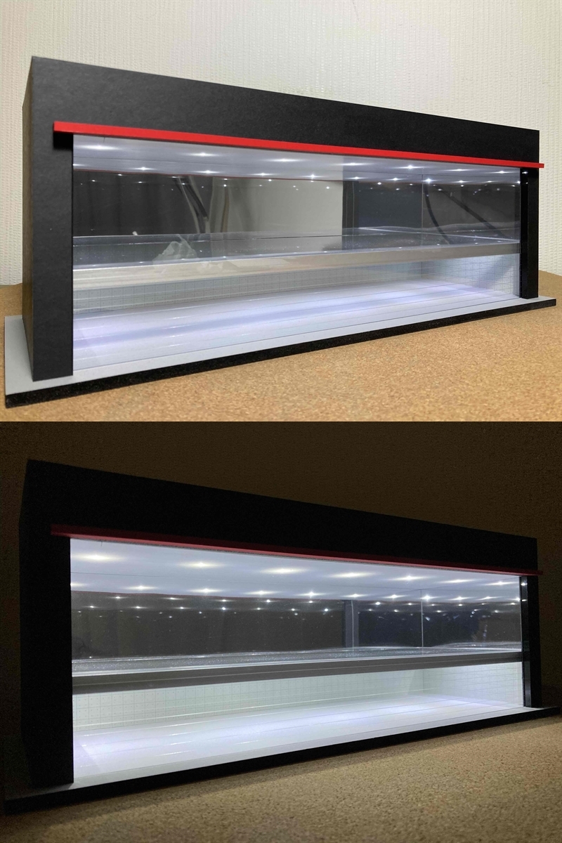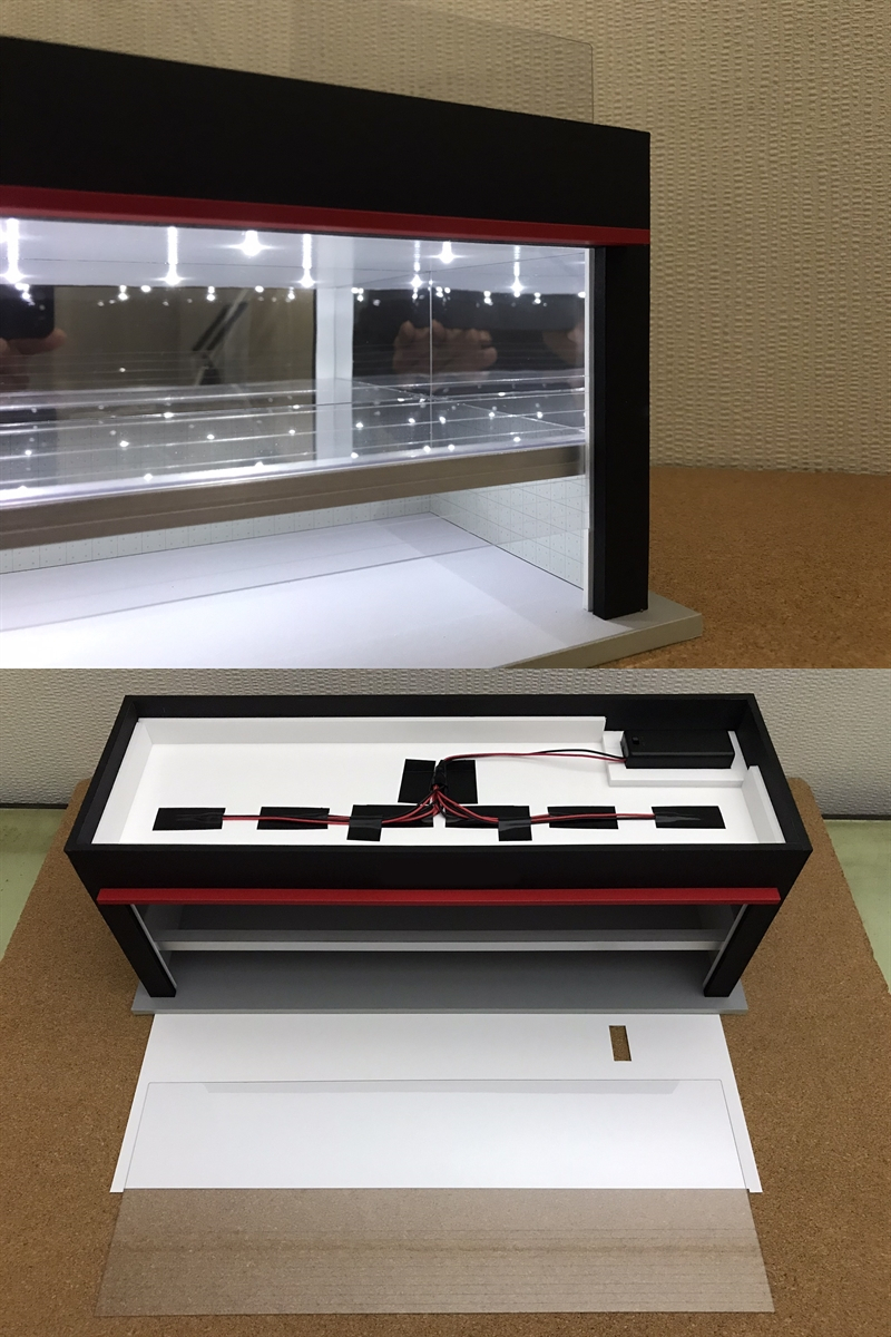 ミニカー(1/64&1/43)の観賞用に製作したショールームのジオラマ模型です(撮影用のミニカーや電池(単4×2本)などは付属しませんのでご注意下さい)。