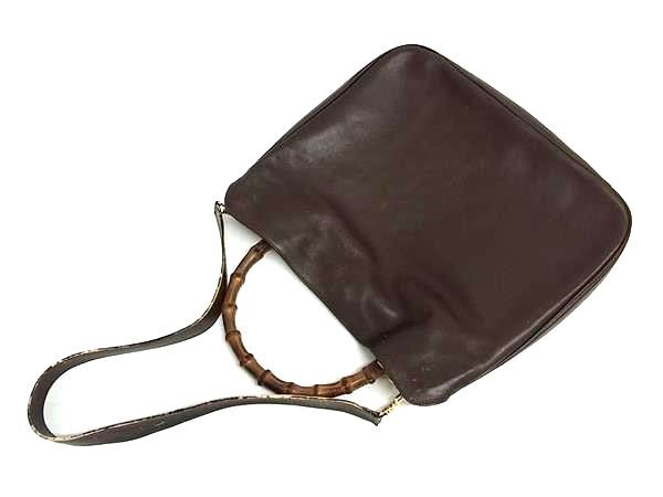 1円 ■美品■ GUCCI グッチ 001 1998 1577 バンブー レザー ハンドバッグ ショルダー 肩掛け ブラウン系 FS5661