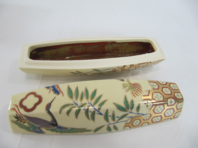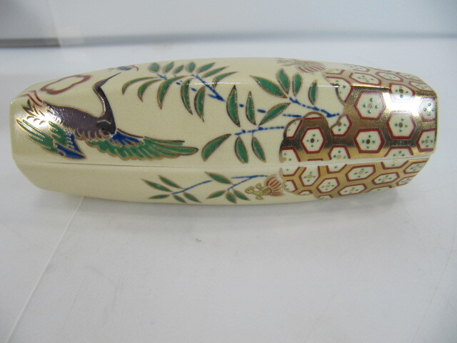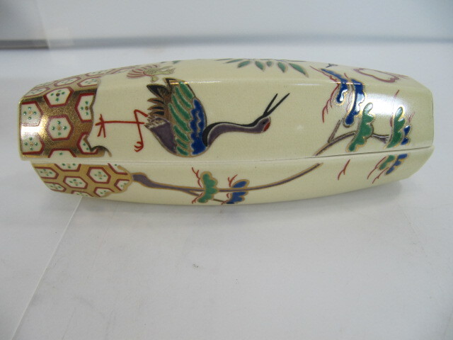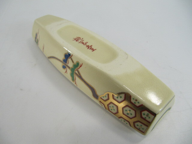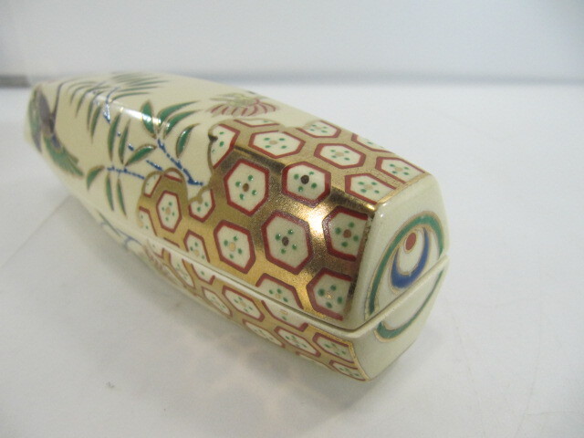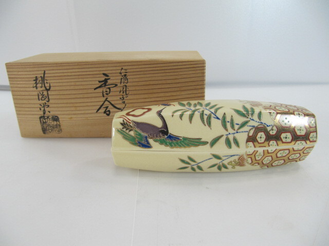 ◆ T-493◇京焼 香合 桃岡堂 仁清風ぶりぶり香合 共箱 長さ約13.5cm 古美術品