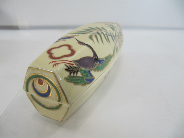 T-493◇京焼 香合 桃岡堂 仁清風ぶりぶり香合 共箱 長さ約13.5cm 古美術品