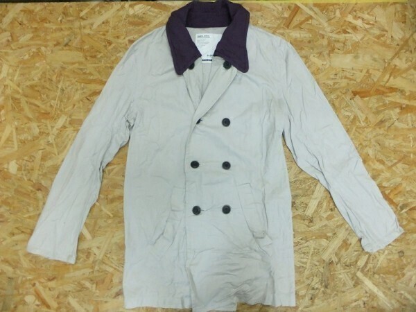 SUSPEREAL サスペリアル メンズ ダブルボタン 綿100% コットン 襟色違い ダブルコートジャケット 3 ベージュ紫 です。