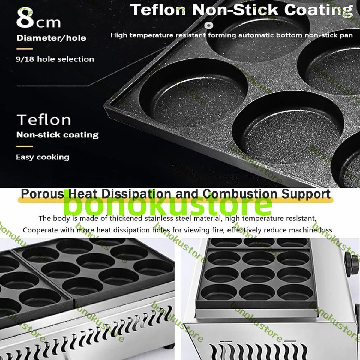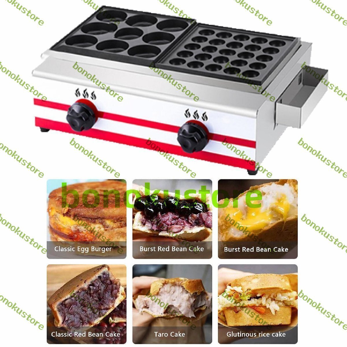 業務用ガス加熱バーガーマシン、業務用ガスエッグバーガーマシン、個別ノブコントロール、9/18/34穴、34卵またはフィッシュボールを同時に揚げることができます(34)