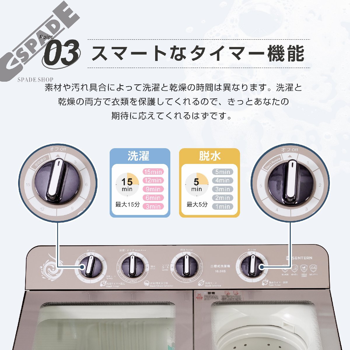 【国内発送】洗濯機 洗濯容量10kg 脱水容量8kg 10キロ 8キロ キレイ タイマー コンパクト 一人暮らし 節電 二槽式洗濯機 ステンレス槽