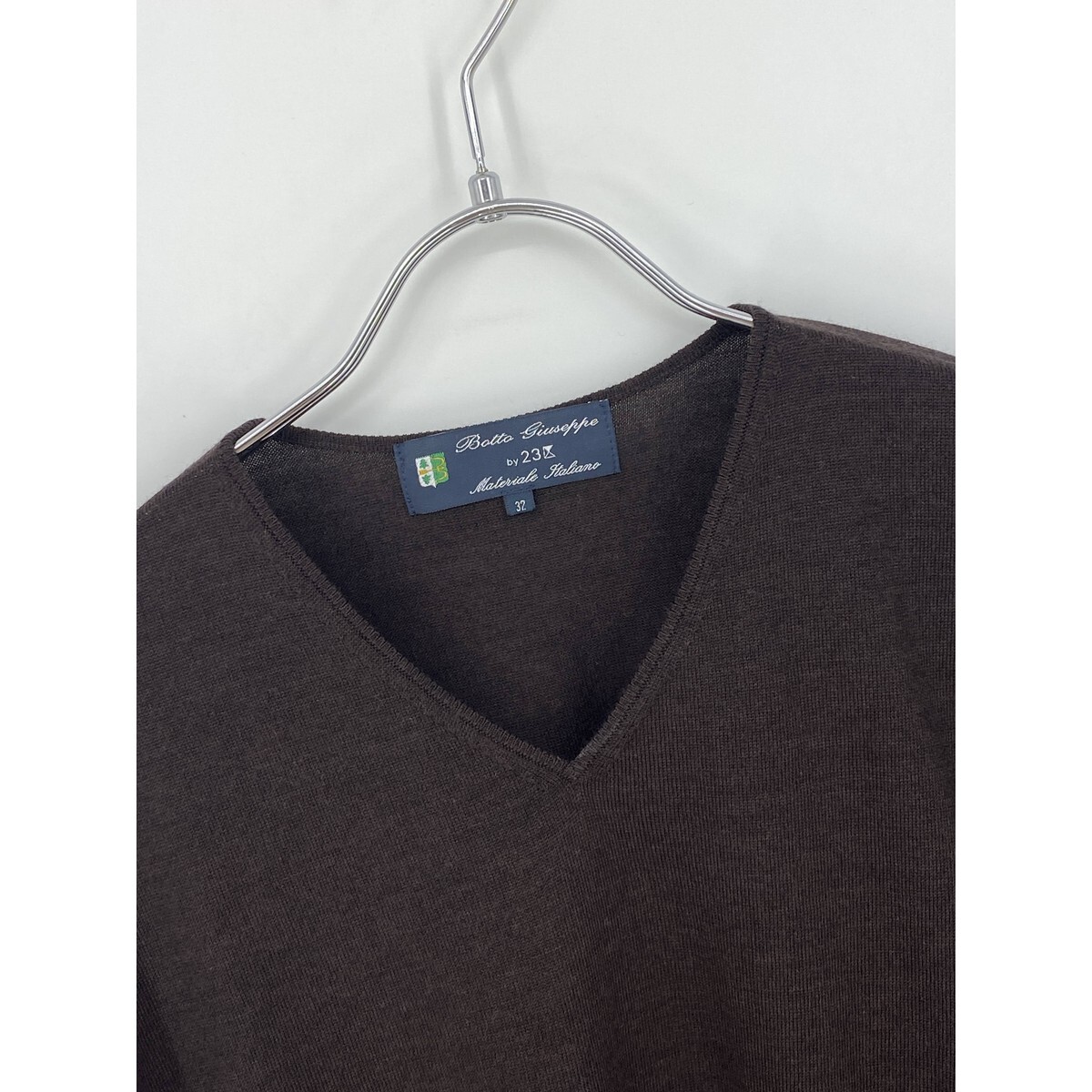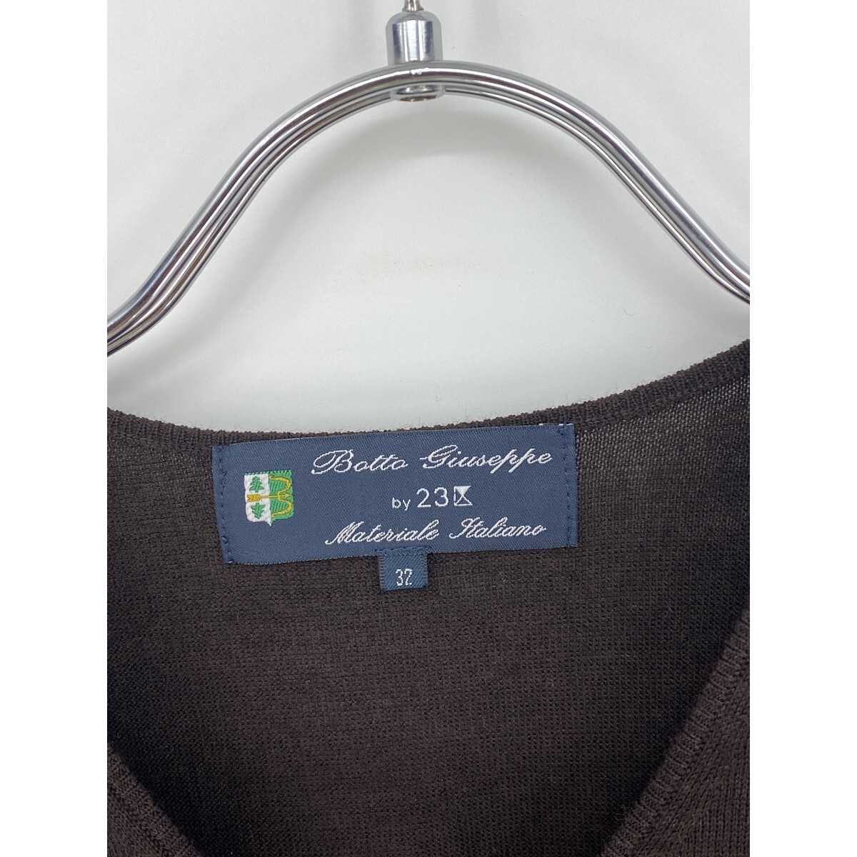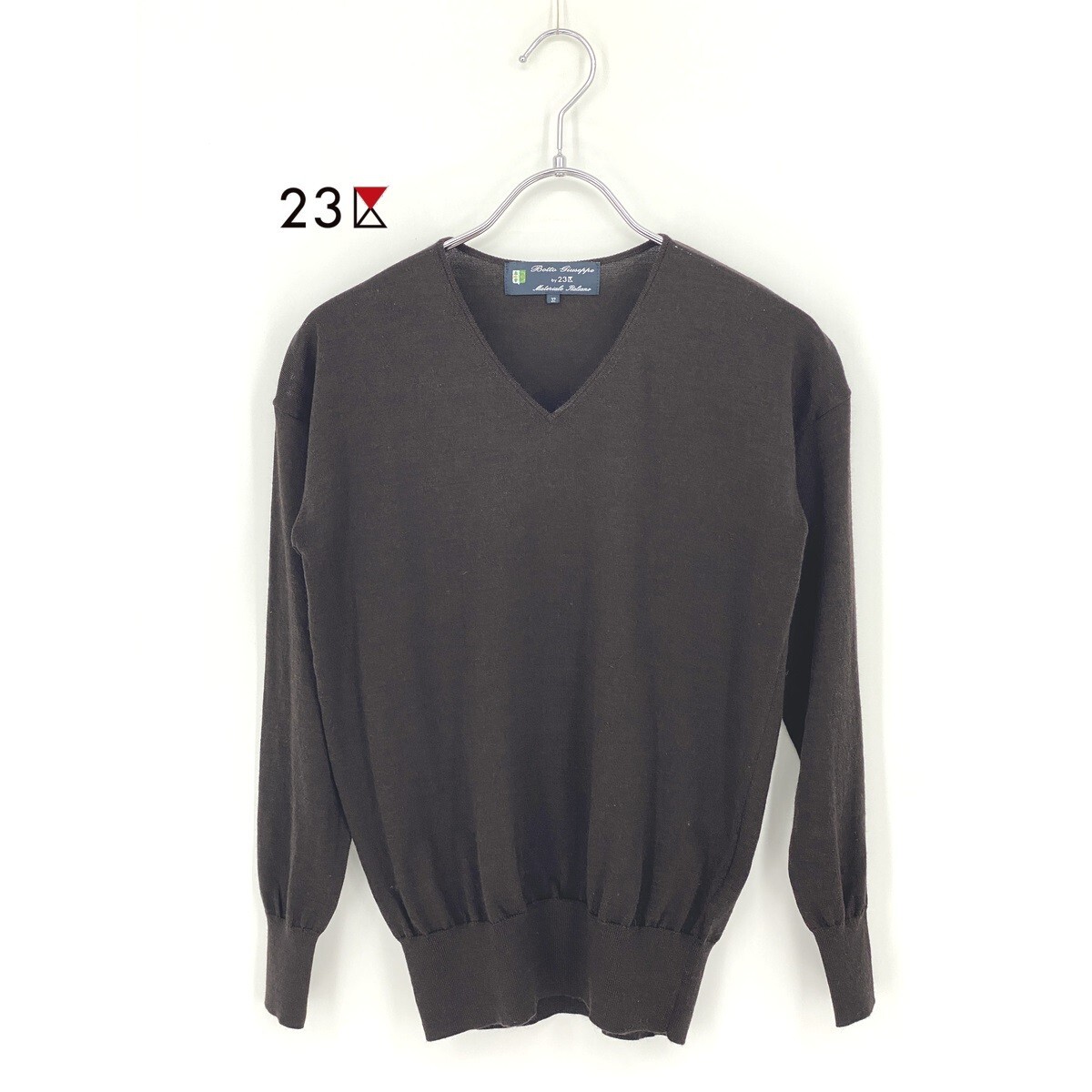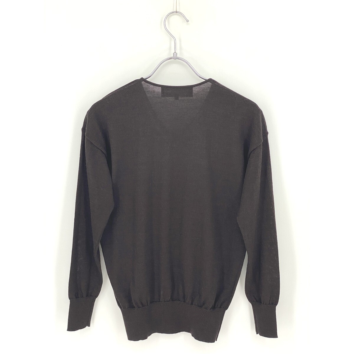 B0545/極美品 23区 ニジュウサンク botto giuseppe ウール 無地 Vネック 長袖 ニット リブ セーター 32 S程 茶 レディース カーディガン