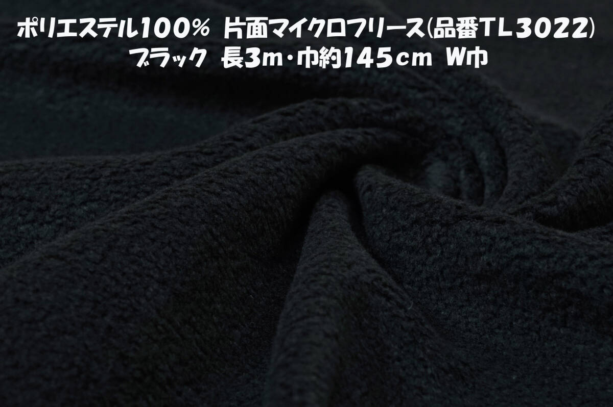 片面マイクロフリース(品番TL3022) ブラック やや中厚あったかソフト1WAY伸縮 長3m巾約145cm フリースジャケット プルオーバー パーカー