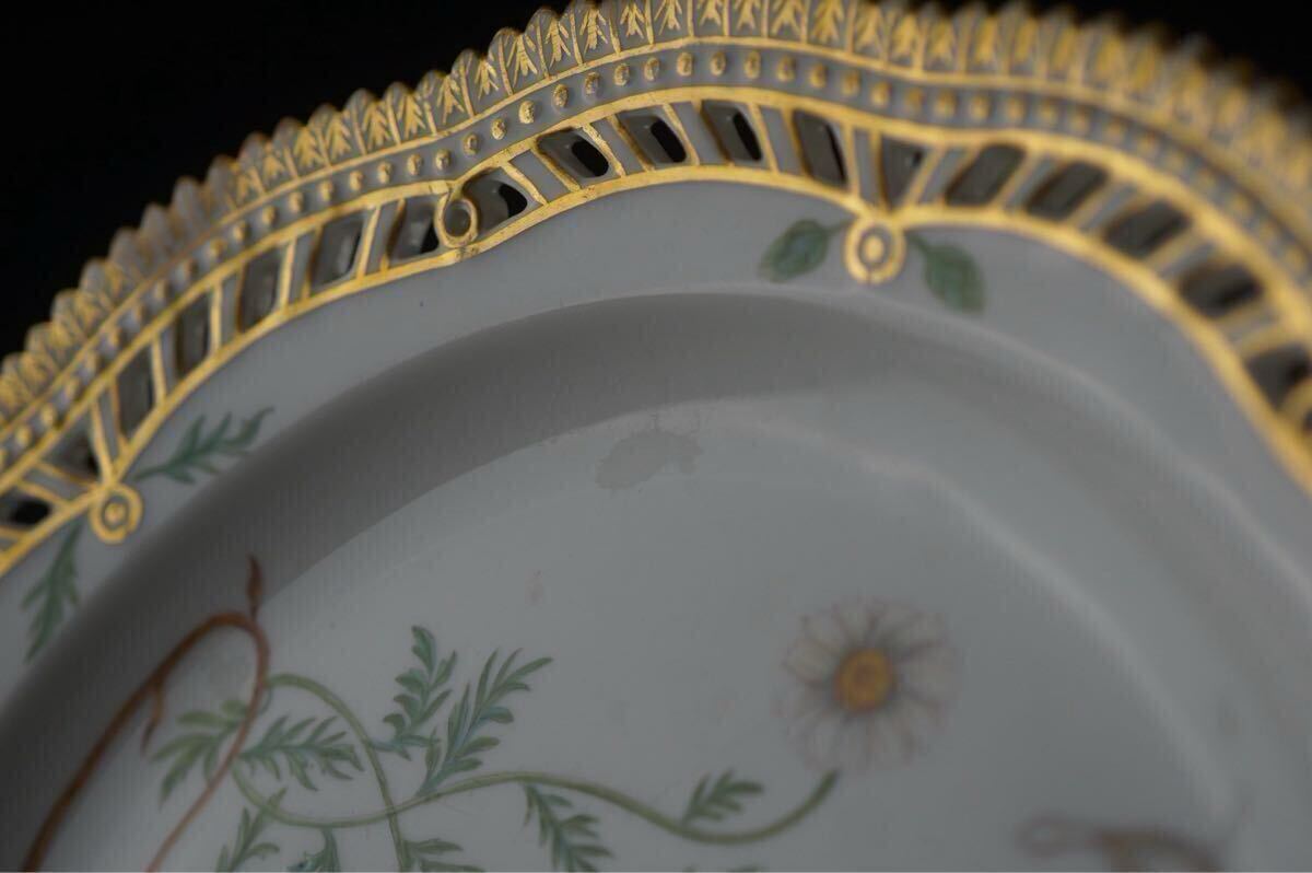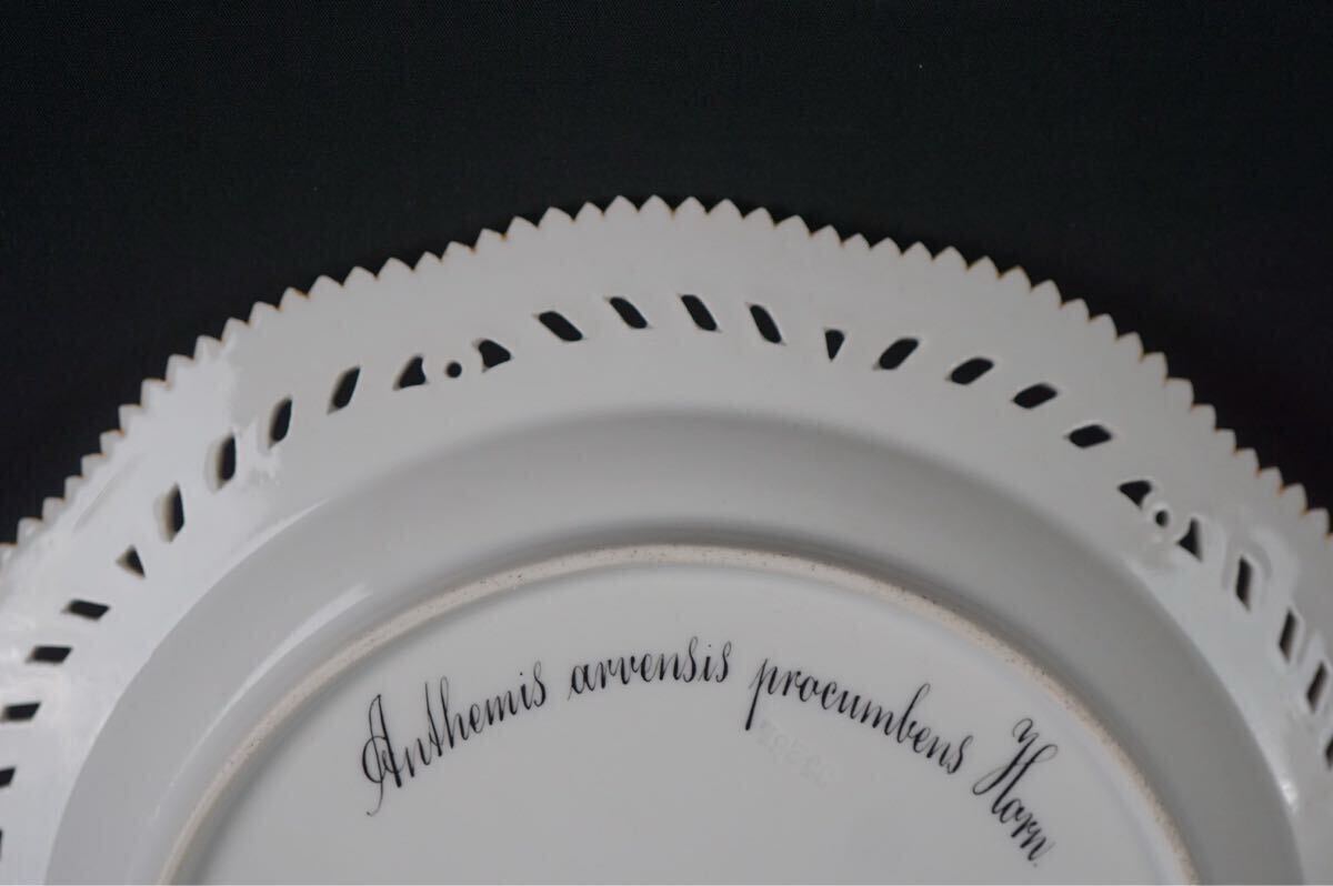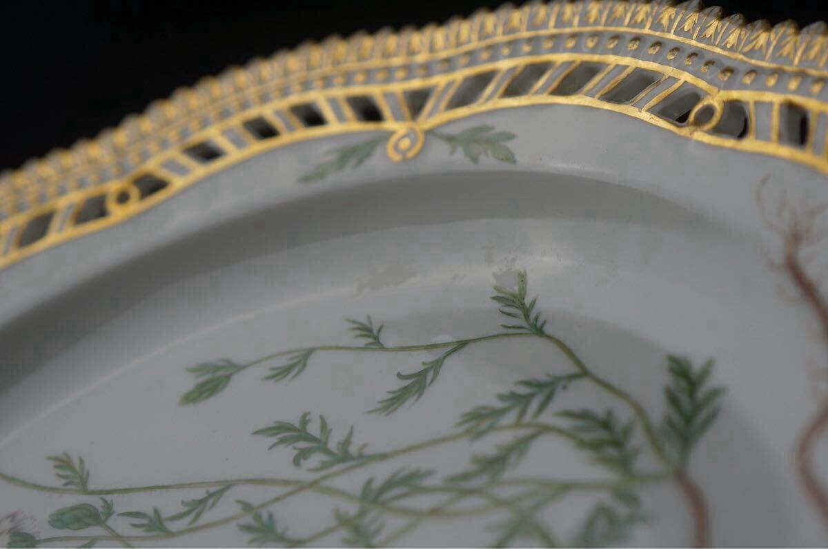 ラウンド透かし目手描きで施された植物の絵と金彩が、大変希少かつ贅沢な一点物のテーブルウェアです。