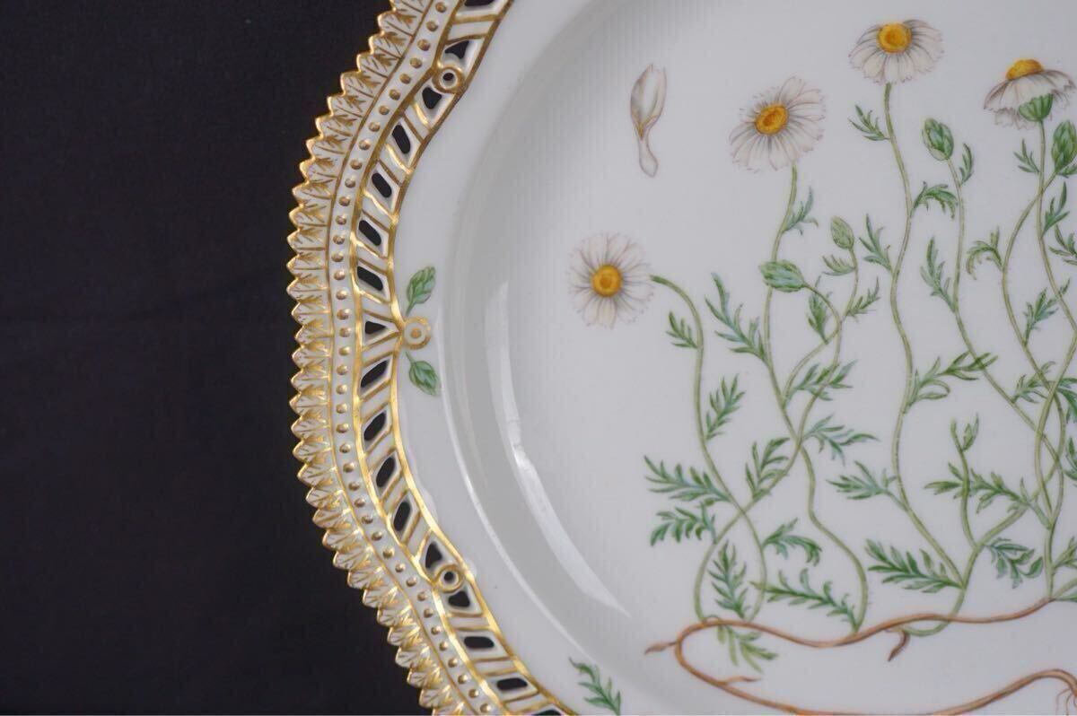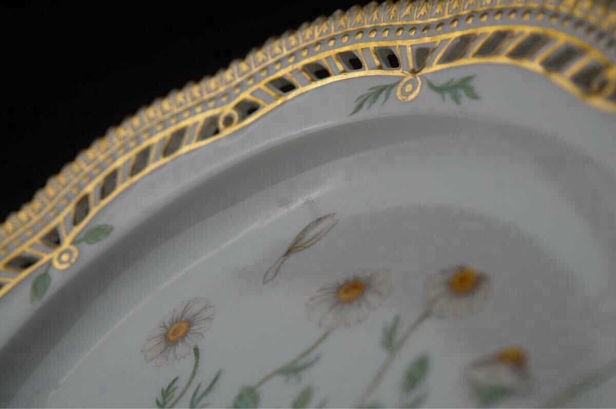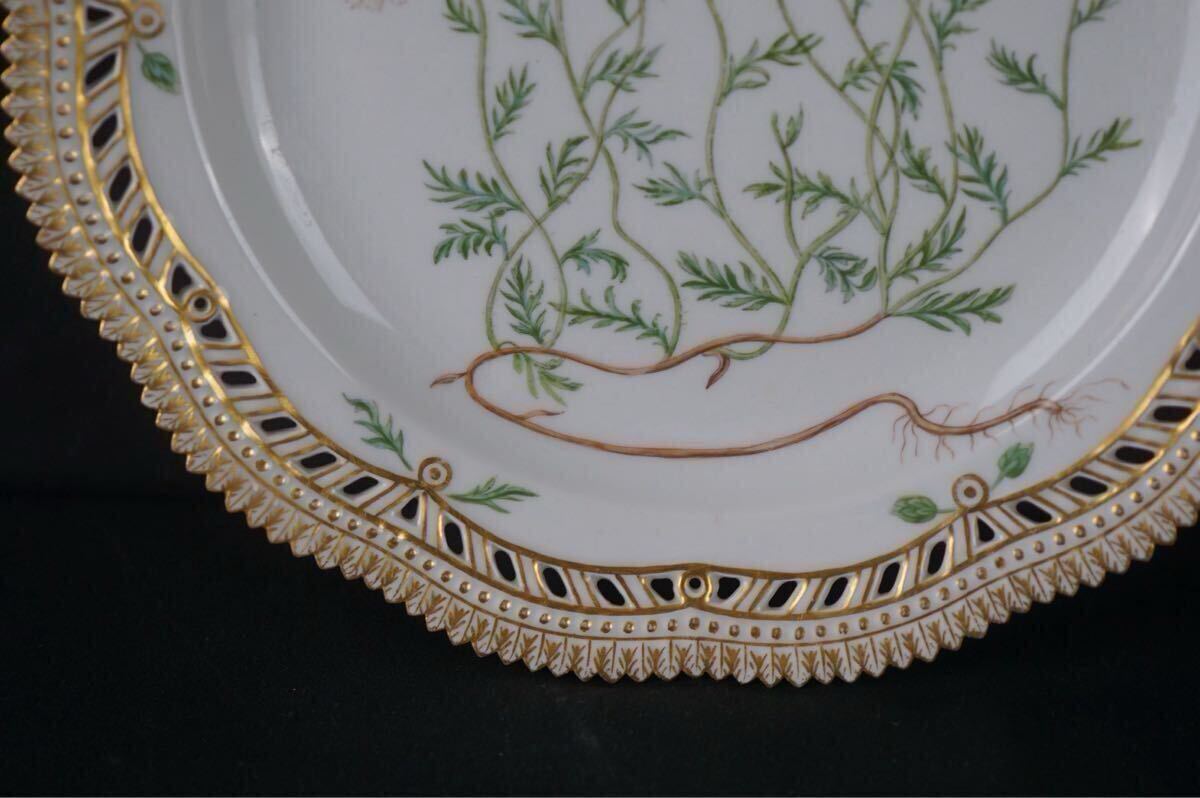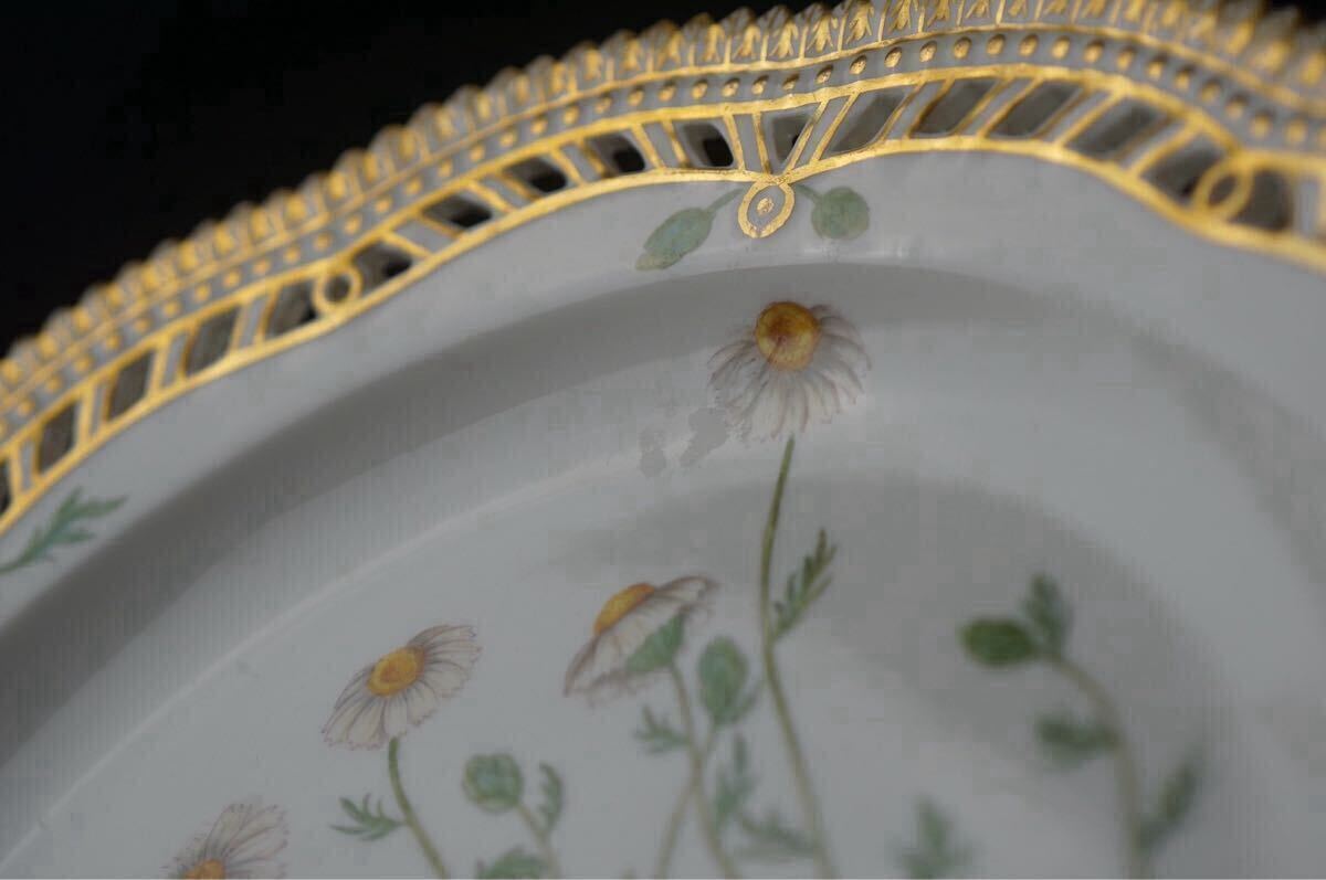 ラウンド透かし目手描きで施された植物の絵と金彩が、大変希少かつ贅沢な一点物のテーブルウェアです。