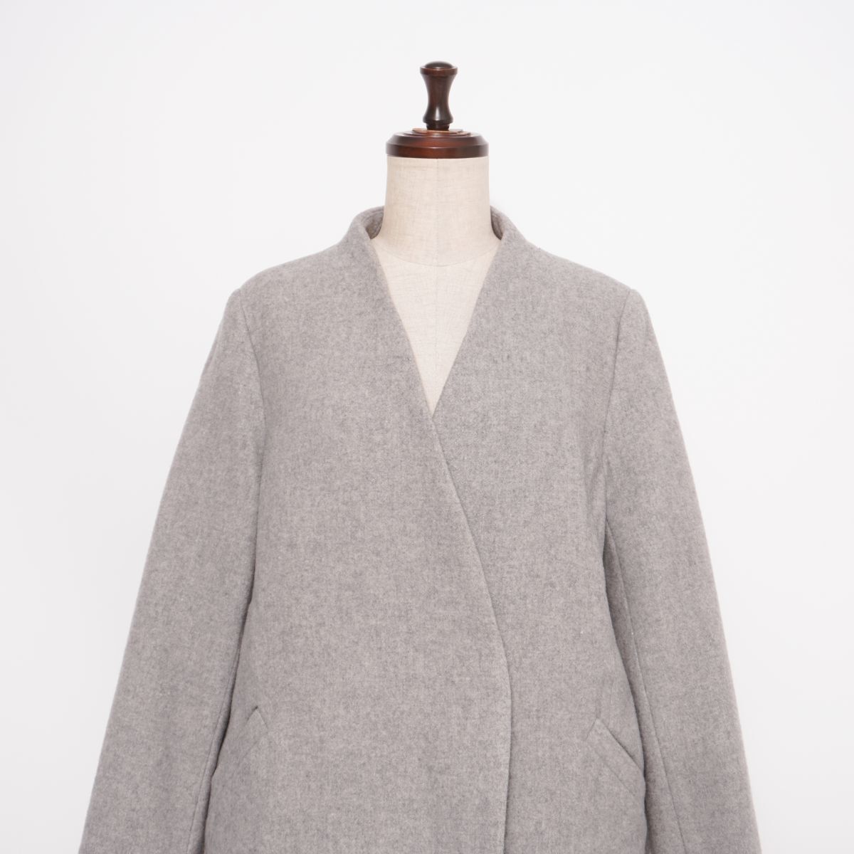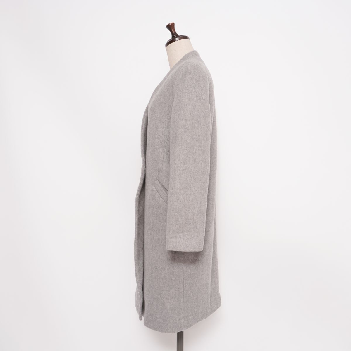 美品 PLST プラステ ウール混 ノーカラーチェスターコート アウター 総裏 レディース グレー サイズS*HD1326