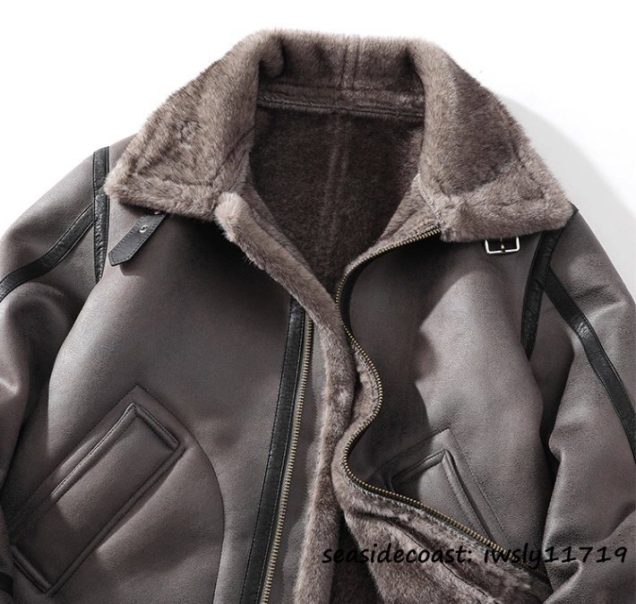 超美品★定価16万 ムートンコート メンズ フライトジャケット 極防寒 厚手 裏起毛 ライダース ブルゾン ジャンバー 毛皮 ファーコート 2XL