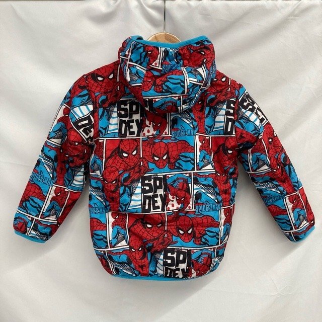B396 スパイダーマン キッズ ユーロ古着 ポリエステル 総柄 中綿ジャケット レッド SPIDERMAN キッズ