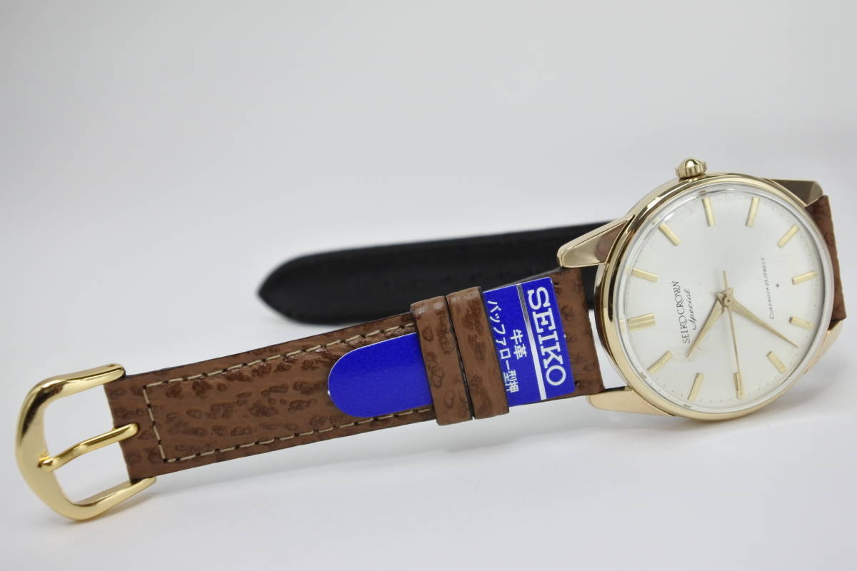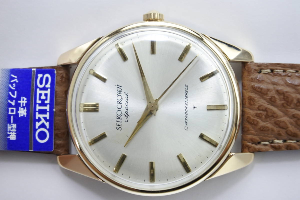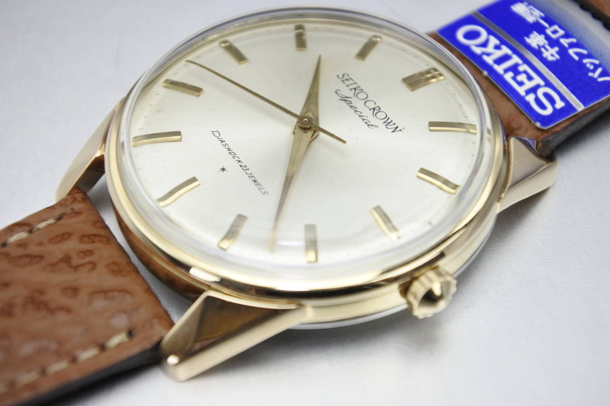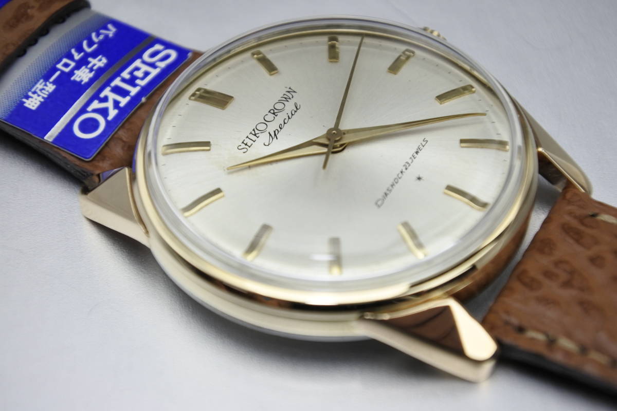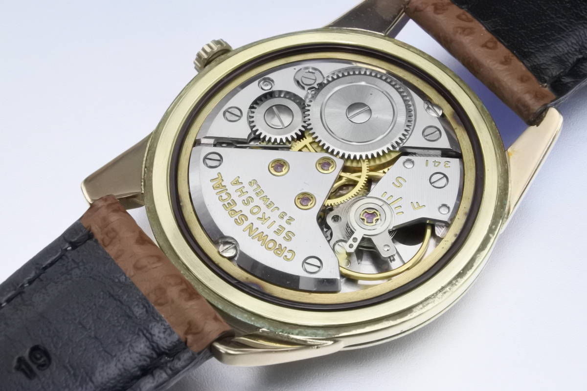 内部部品GS 1st同じ☆1963年製  SEIKO CROWN Special 23石 秒針規制装置搭載 手巻紳士腕時計 K14金張高級仕様 美品