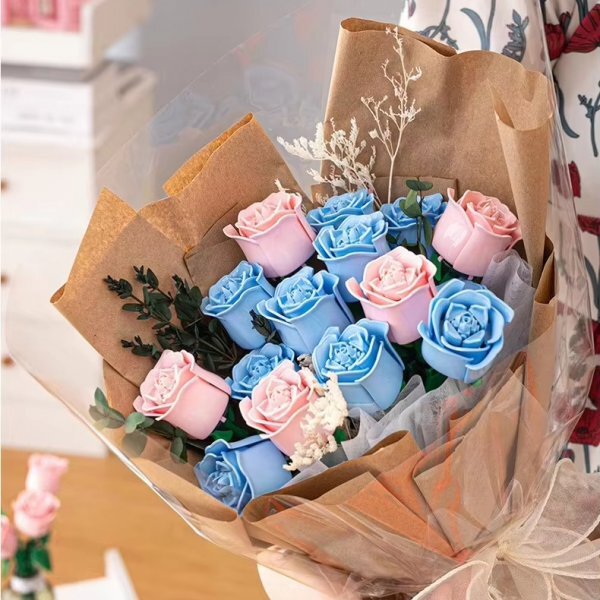 インテリアやプレゼントなどにも使える薔薇バラのデザインのブロック玩具です。