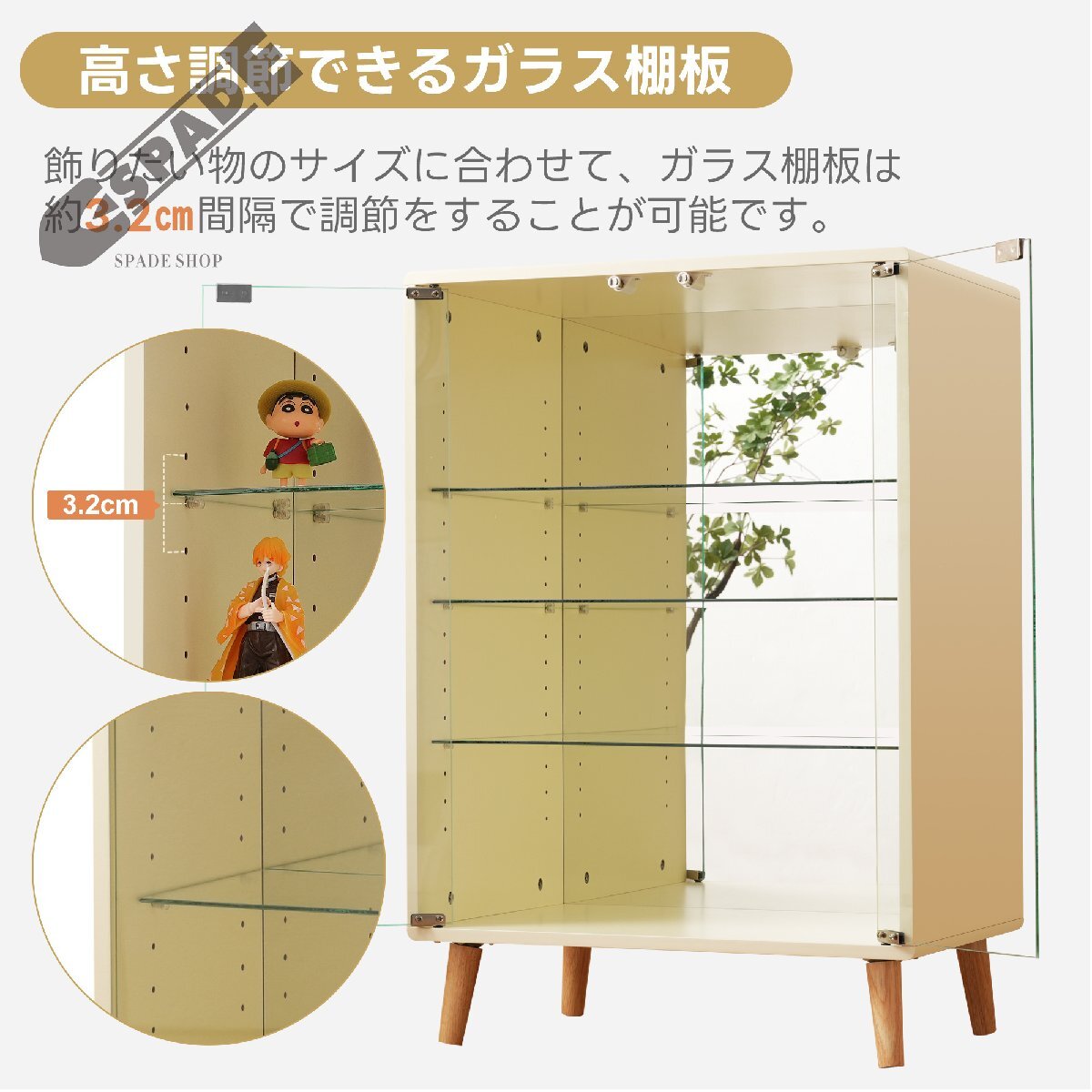 • 【ガラス棚板は高さ調節が可能】飾りたい物のサイズに合わせて、ガラス棚板は約3.2CM間隔で調節をすることが可能です。滑り止め付きのダボでしっかりとガラス棚板を支えます。