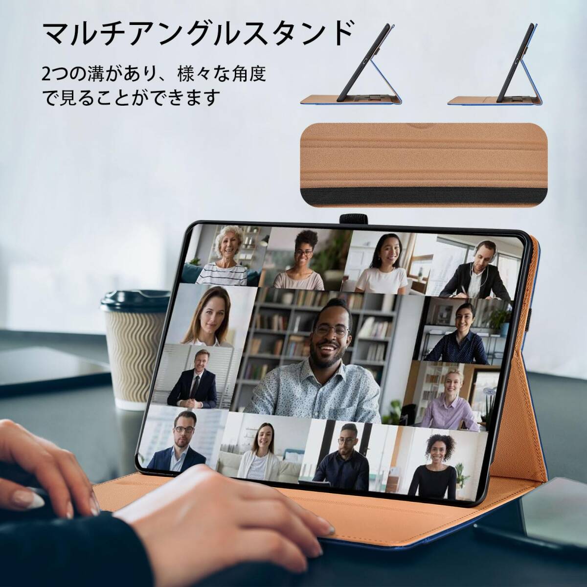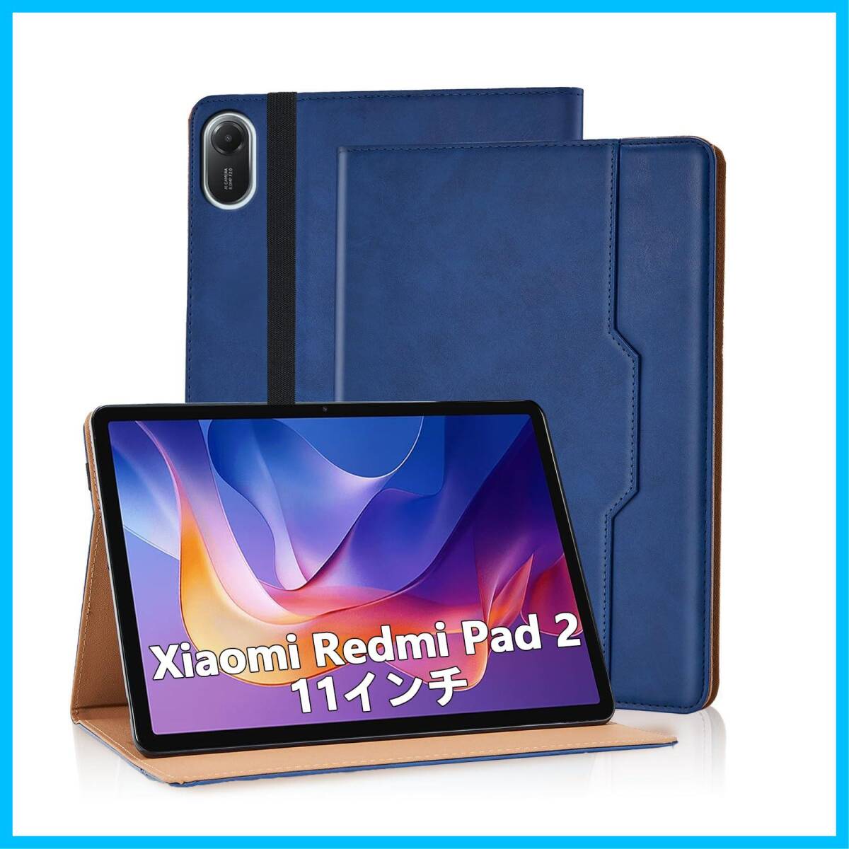 Xiaomi Redmi Pad 2 ケース 11インチ Jajaful Xiaomi Redmi Pad 2 カバー 2025年発売 グリップテープ レッドミーPad2ケース ビジネススタイル 着脱が簡単 ブラケット調整機能 収納ポケット 滑り止め 高級PUレザー製 耐久 衝撃吸収 青
