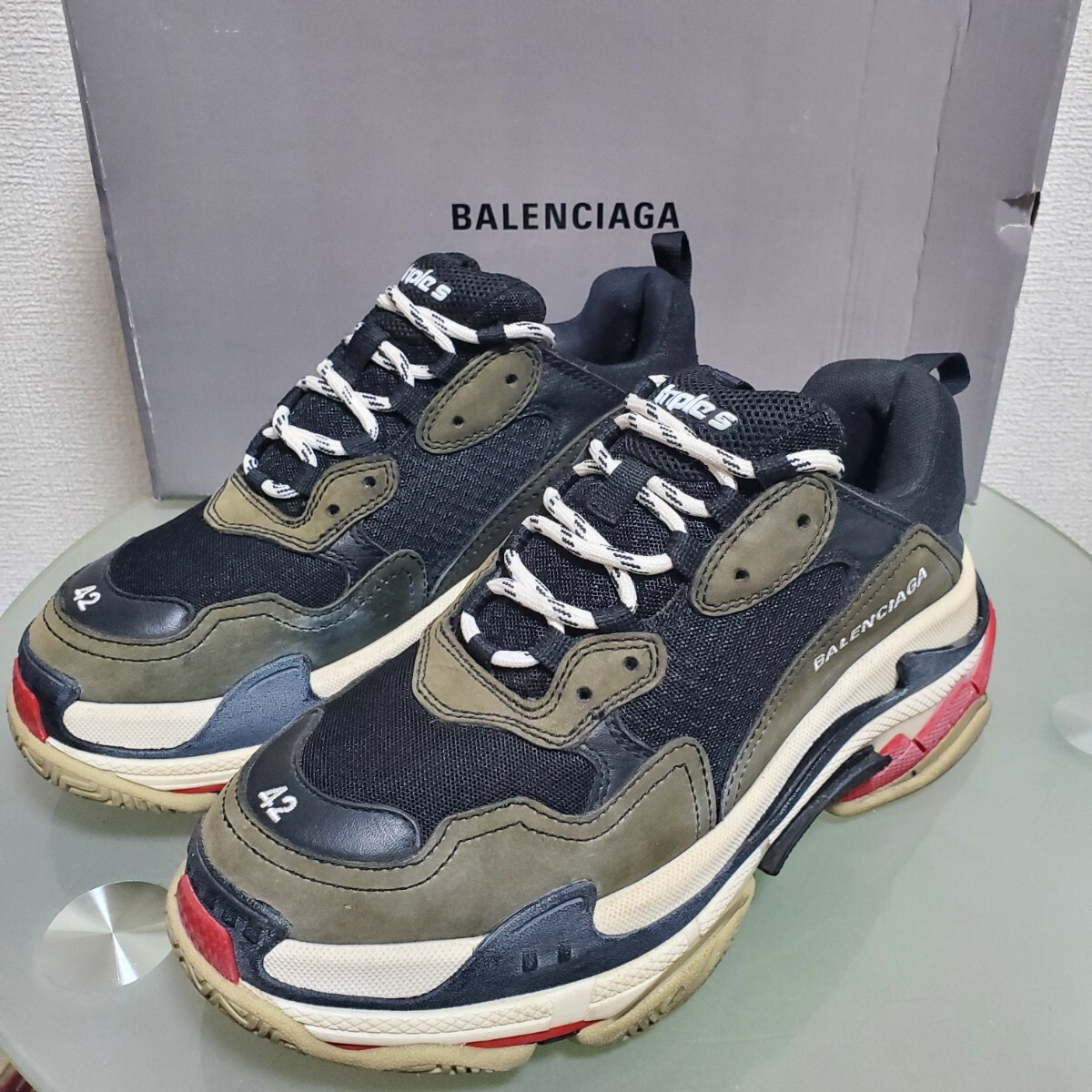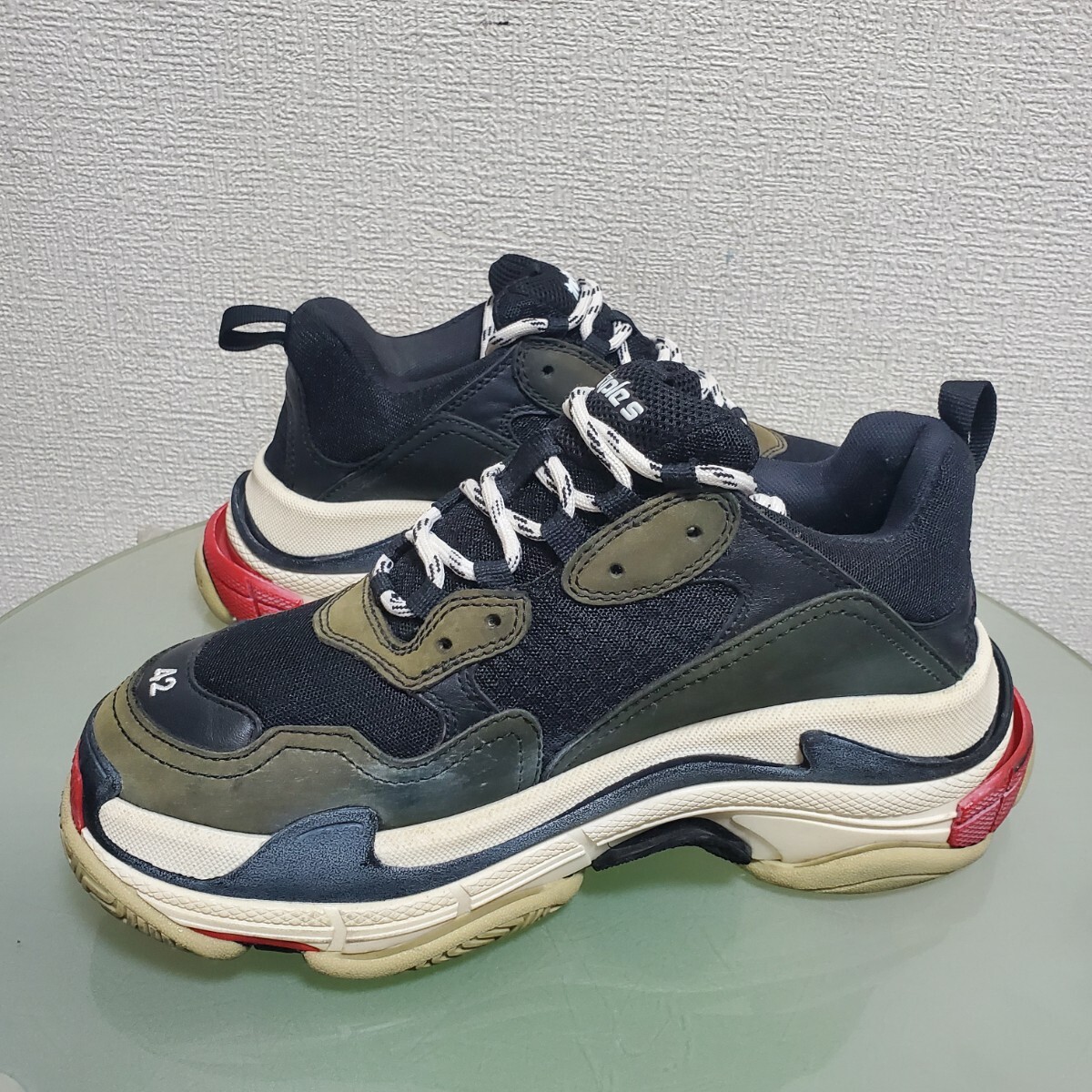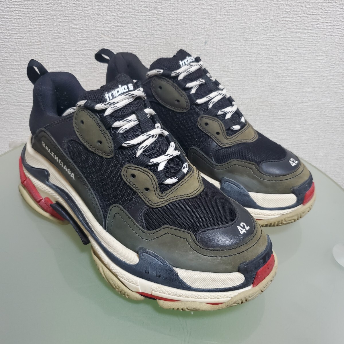 BALENCIAGA バレンシアガ TRIPLE S トリプルS 42 スニーカー 27.5㎝ ダッドスニーカー ヴィンテージ加工 ブラック カーキ 人気靴 正規品 高級靴