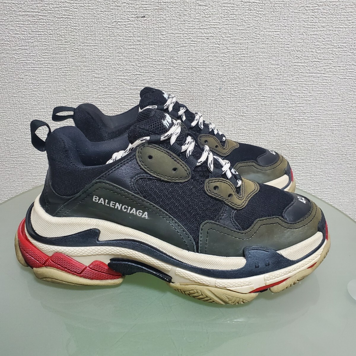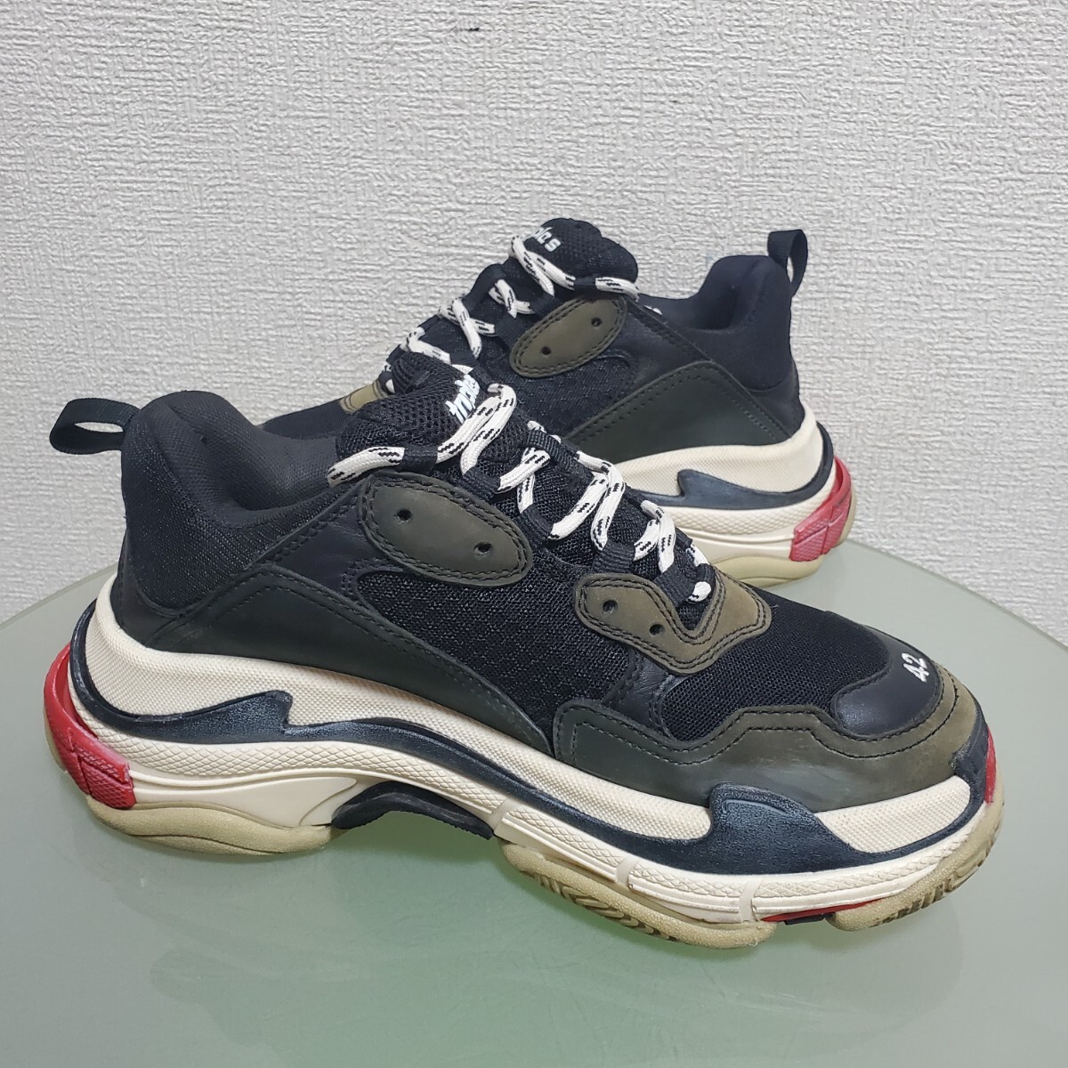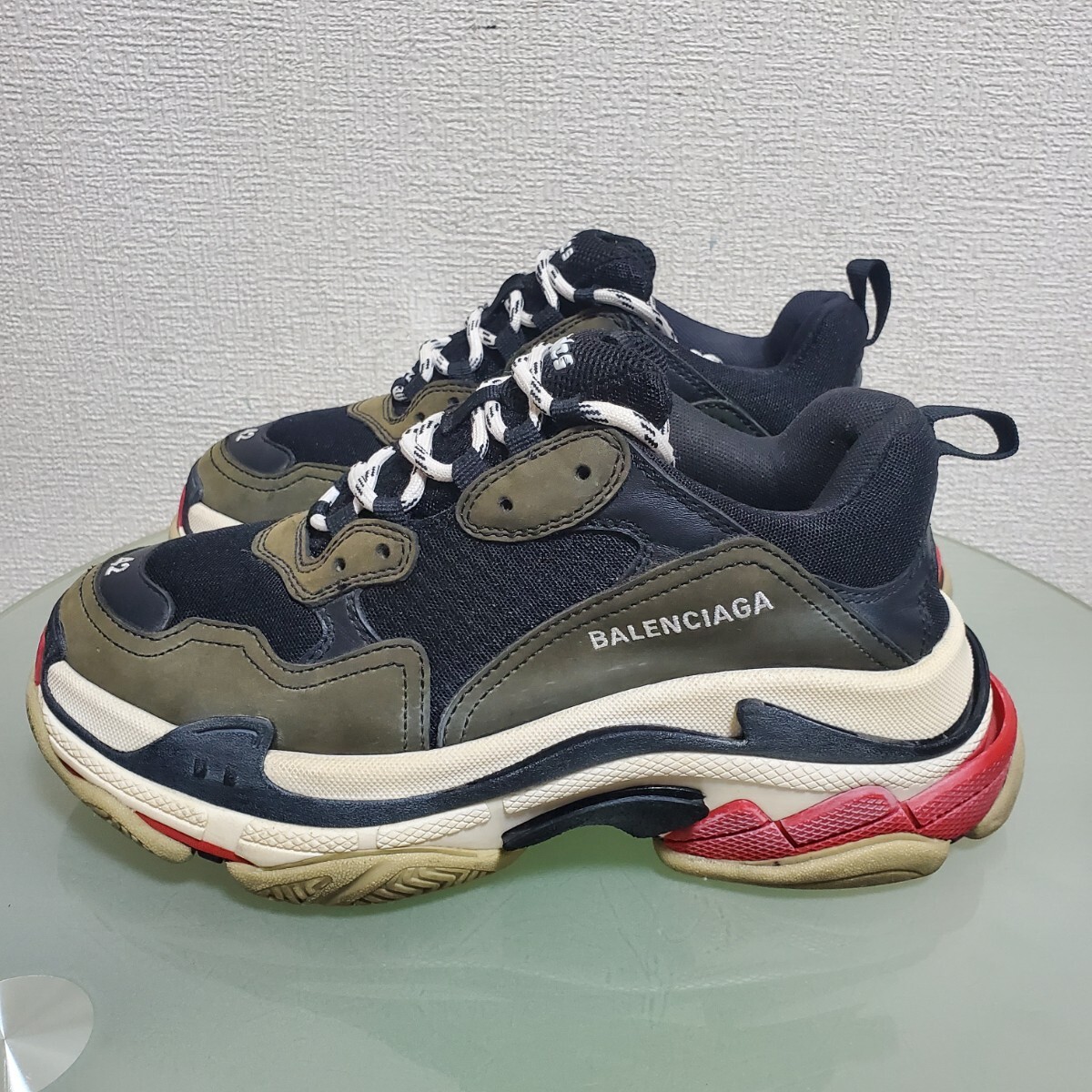BALENCIAGA バレンシアガ TRIPLE S トリプルS 42 スニーカー 27.5㎝ ダッドスニーカー ヴィンテージ加工 ブラック カーキ 人気靴 正規品 高級靴