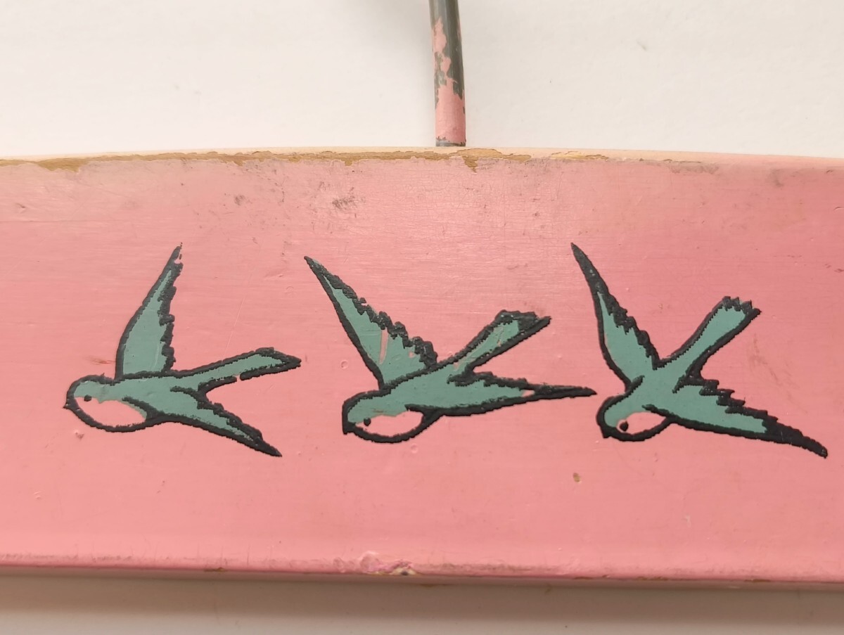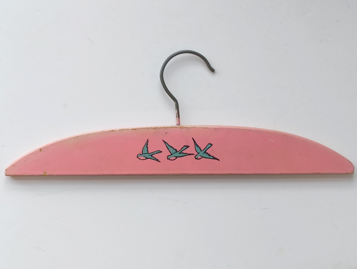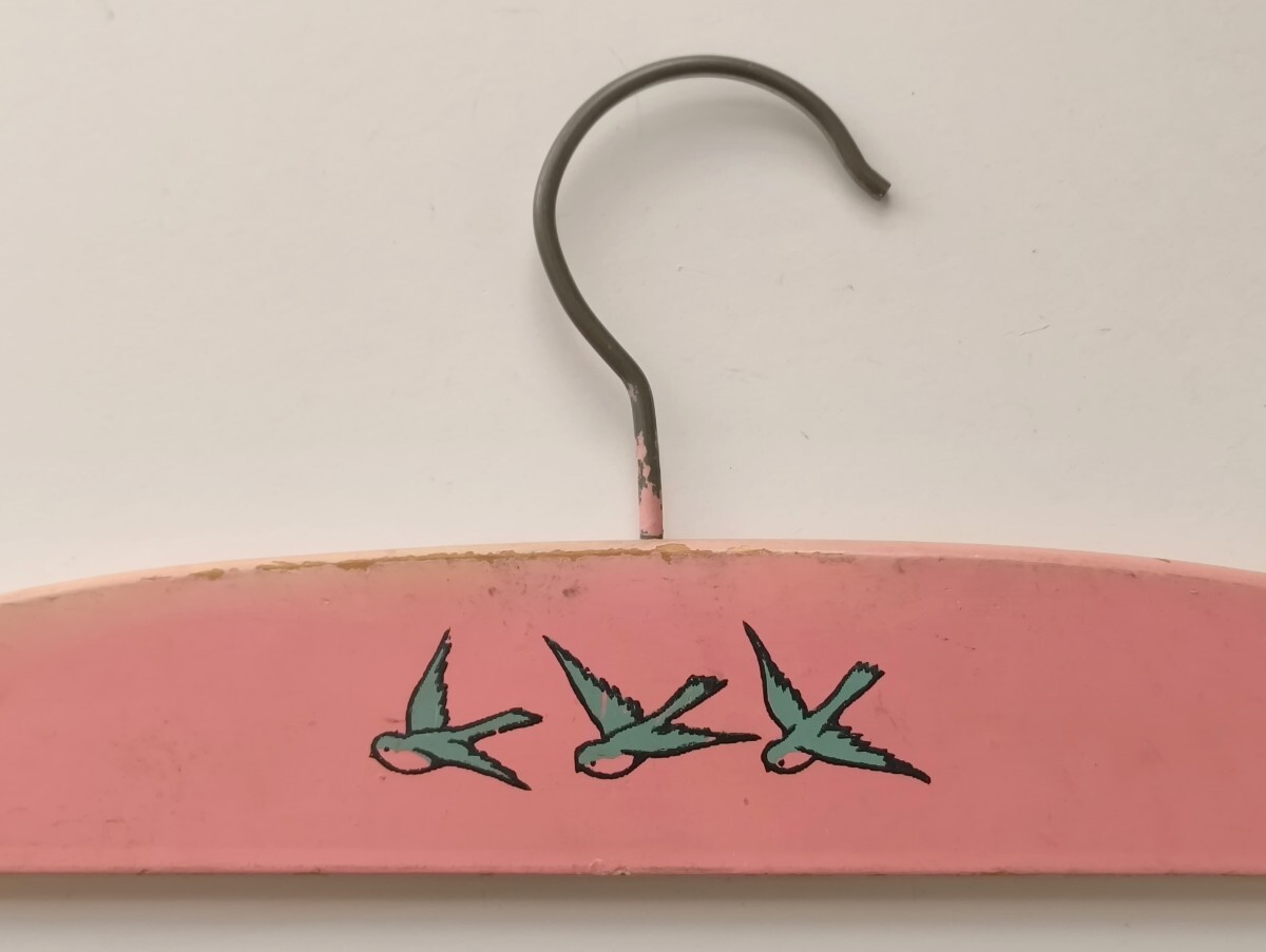 濃いピンク 燕3羽 キッズハンガー  木製ハンガー ペイント ベビー フランス ヴィンテージ アンティーク 子供部屋 インテリア レトロ