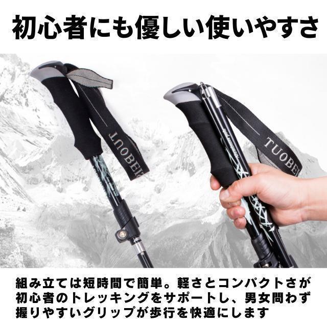 この折りたたみ式トレッキングポールは、登山エンスージアストや荷物を軽量化したいアウトドア愛好者には欠かせないアイテムです。以下の特徴であなたの冒険をさらに快適で安全にサポートします。