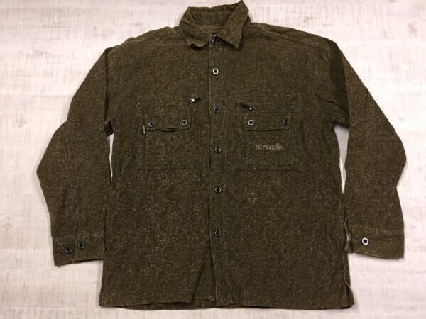 AIRWALK エアウォーク オールド レトロ 古着 マルチポケット ストリート スケート 長袖コーデュロイシャツ メンズ M カーキ です。
