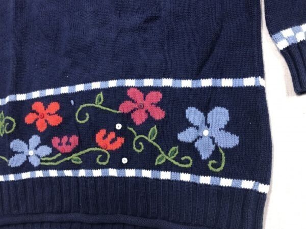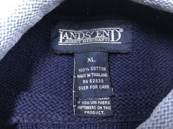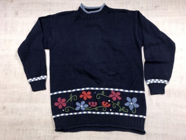 ランズエンド LANDS'END 花柄 オールド レトロ カントリー アメカジ 古着 コットンニット セーター モックネック レディース 綿100% XL 紺 です。