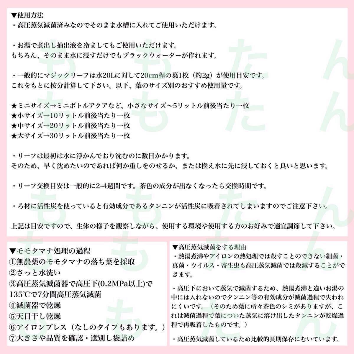 ・一般的にマジックリーフは水20Lに対して20cm程の葉1枚が使用目安です。