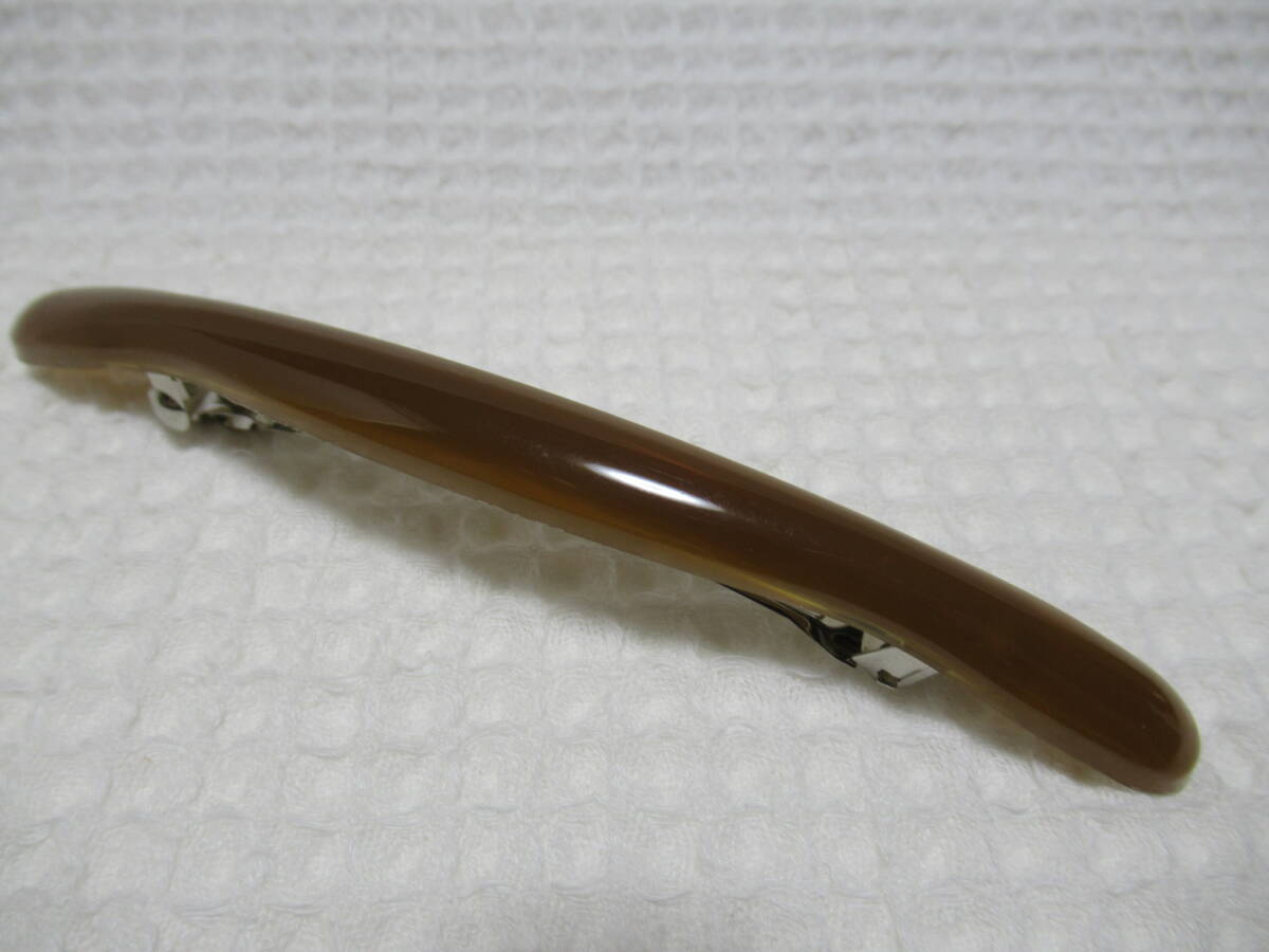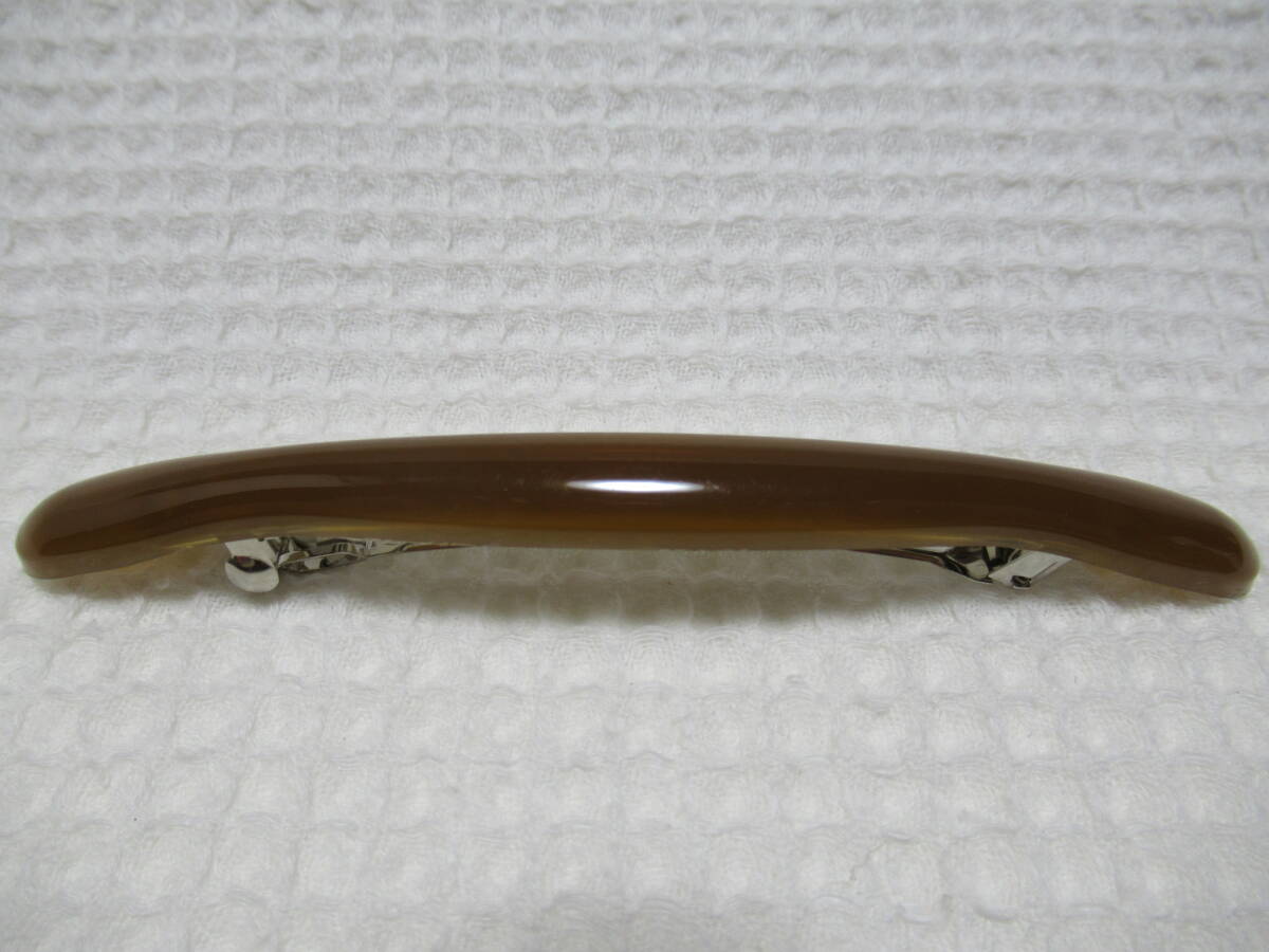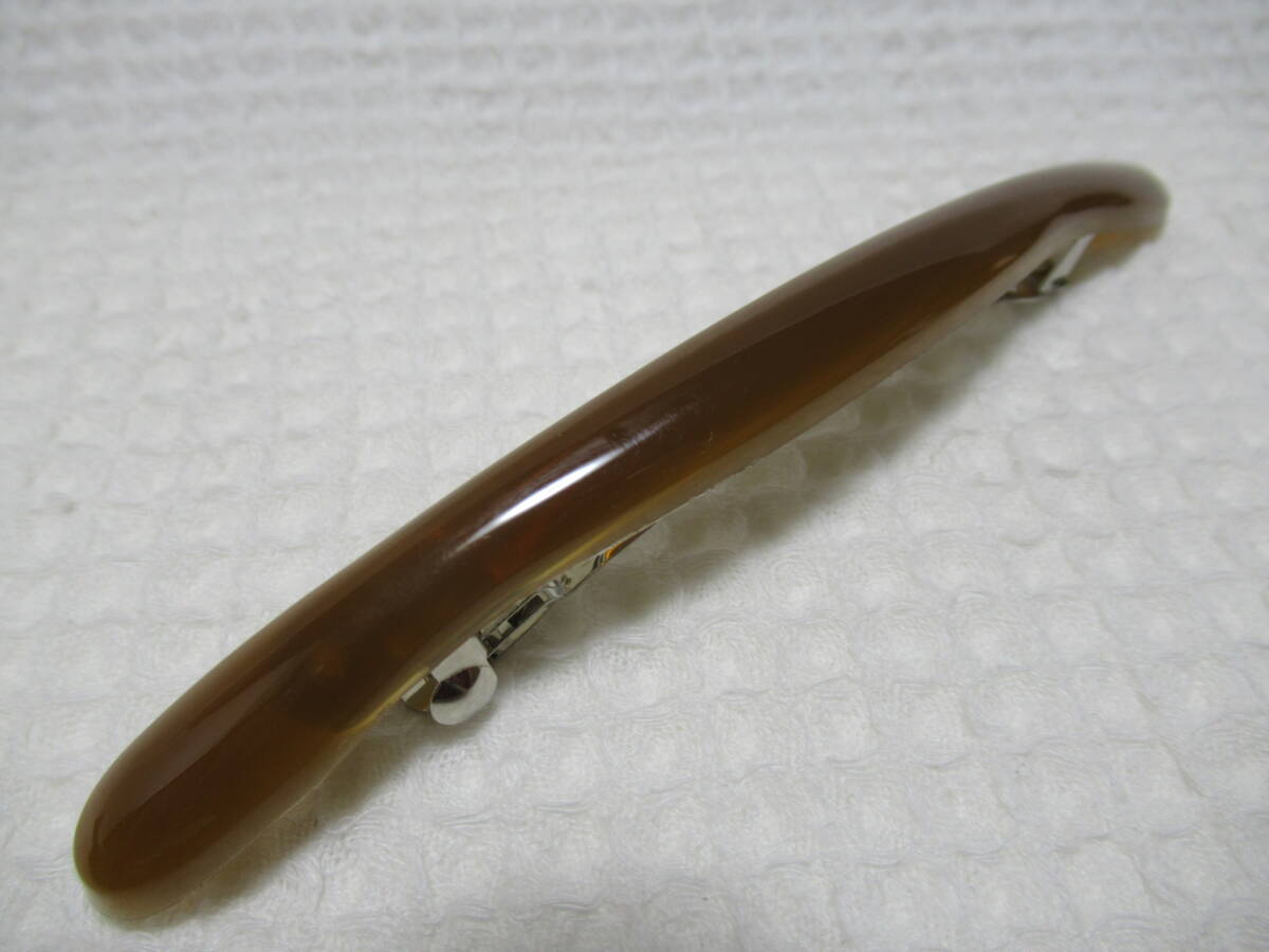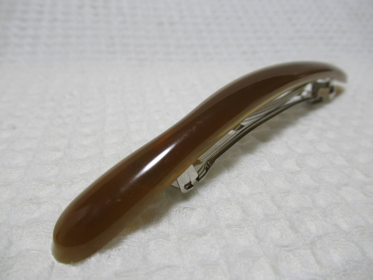 樹脂製細い緩やかなウエーブ型 シルバー色メタルバレッタ ブラウン系