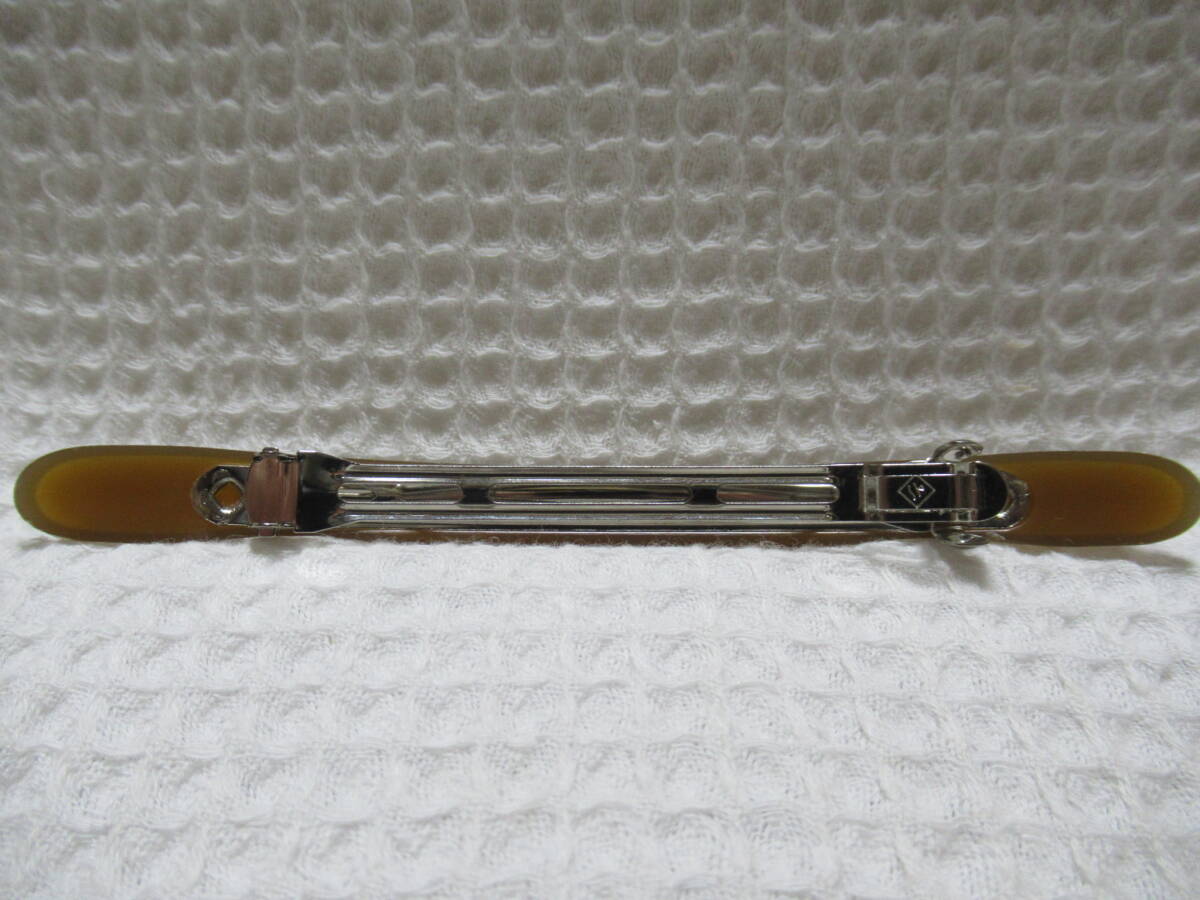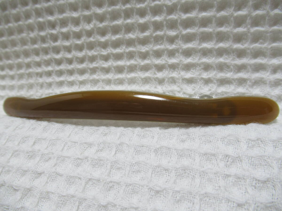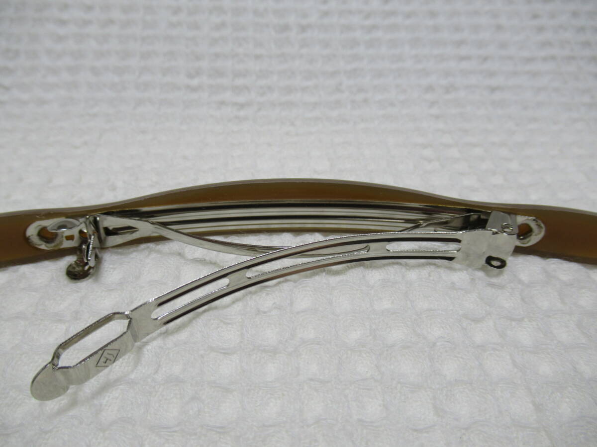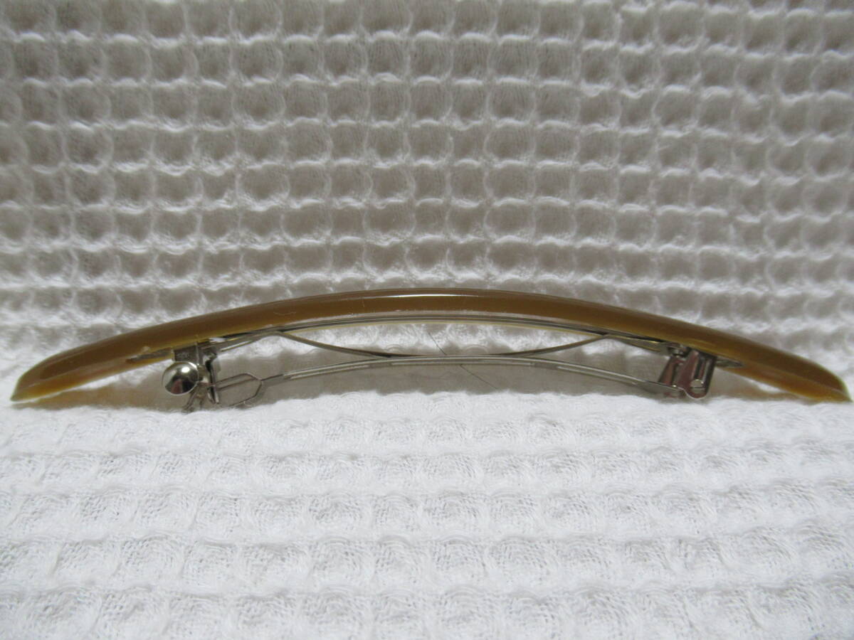 樹脂製細い緩やかなウエーブ型 シルバー色メタルバレッタ ブラウン系