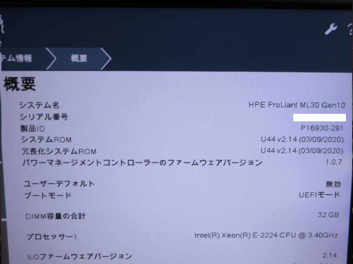 | 【※HDD無し】HP ProLiant ML30 Gen10 / Xeon E-2224 3.40GHz / RAM 32GB / DVD-ROM / Smart Array S100i SR Gen10 / No.Z546 | ||||||||||||||||||||||||||||||||||||||||