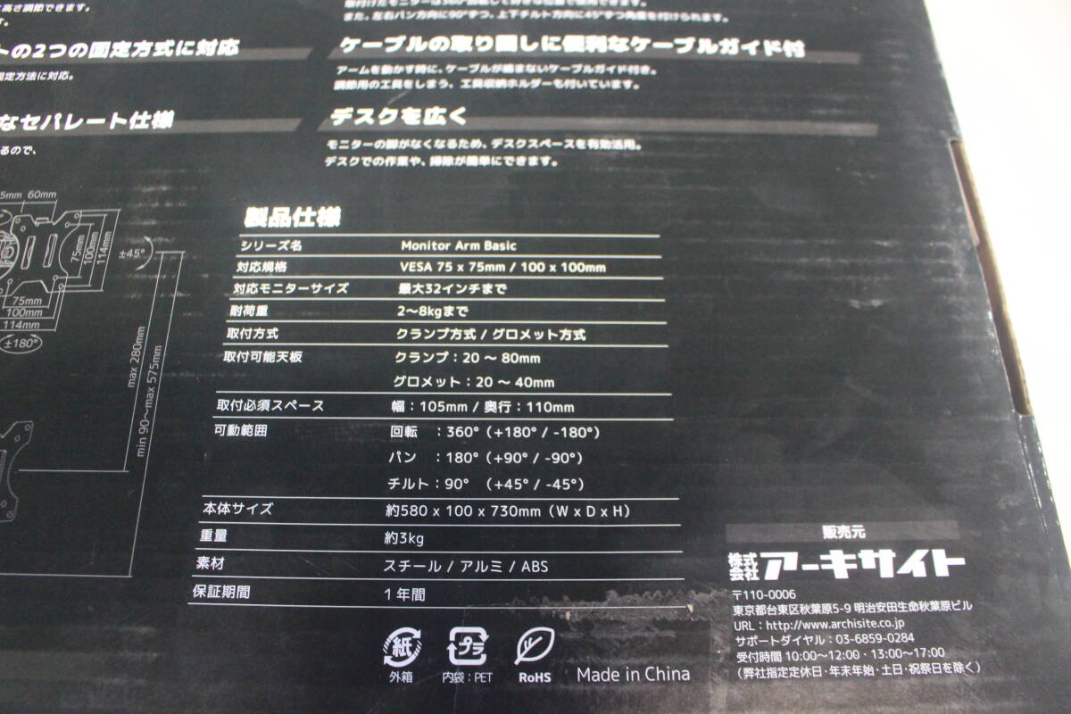 ARCHISS アーキス Monitor Arm Basic ガススプリング式 4軸 液晶モニターアーム AS-MABS01 未開封 箱痛み品