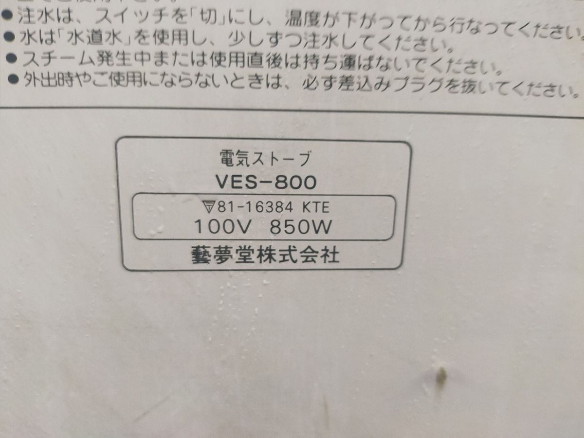F01-20251031-04 藝夢堂 電気ストーブ VES-800 スチーム機能付き 100V 850W 動作確認済み 昭和レトロ 暖房器具