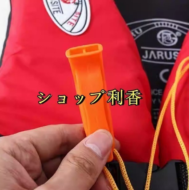 サイズ:サイズ表をご参照ください。(Sサイズは子供用になります。) 高い浮力ライフジャケット、フローティングベスト登場。 6T超軽量EPE発泡ポリエチレン素材で、浮力抜群。 体をしっかりサポートする3つのワンタッチバックルとすり抜け防止ベルト付き! ワンタッチフックベルトを調節することで体にフィットします。 特に身体が小さく動きが活発なお子様でも脱げる心配がありません。 泳ぐことに邪魔にならずに確実に浮力を確保出来る構造です。 笛付き救命胴衣として緊急時も安心! 股下ベルトがあり、万が一の着水時でもベストが浮き上がり脱げしまうのを防ぎます。 この機能性は釣りだけでなく、作業用や防災用にもお勧めです