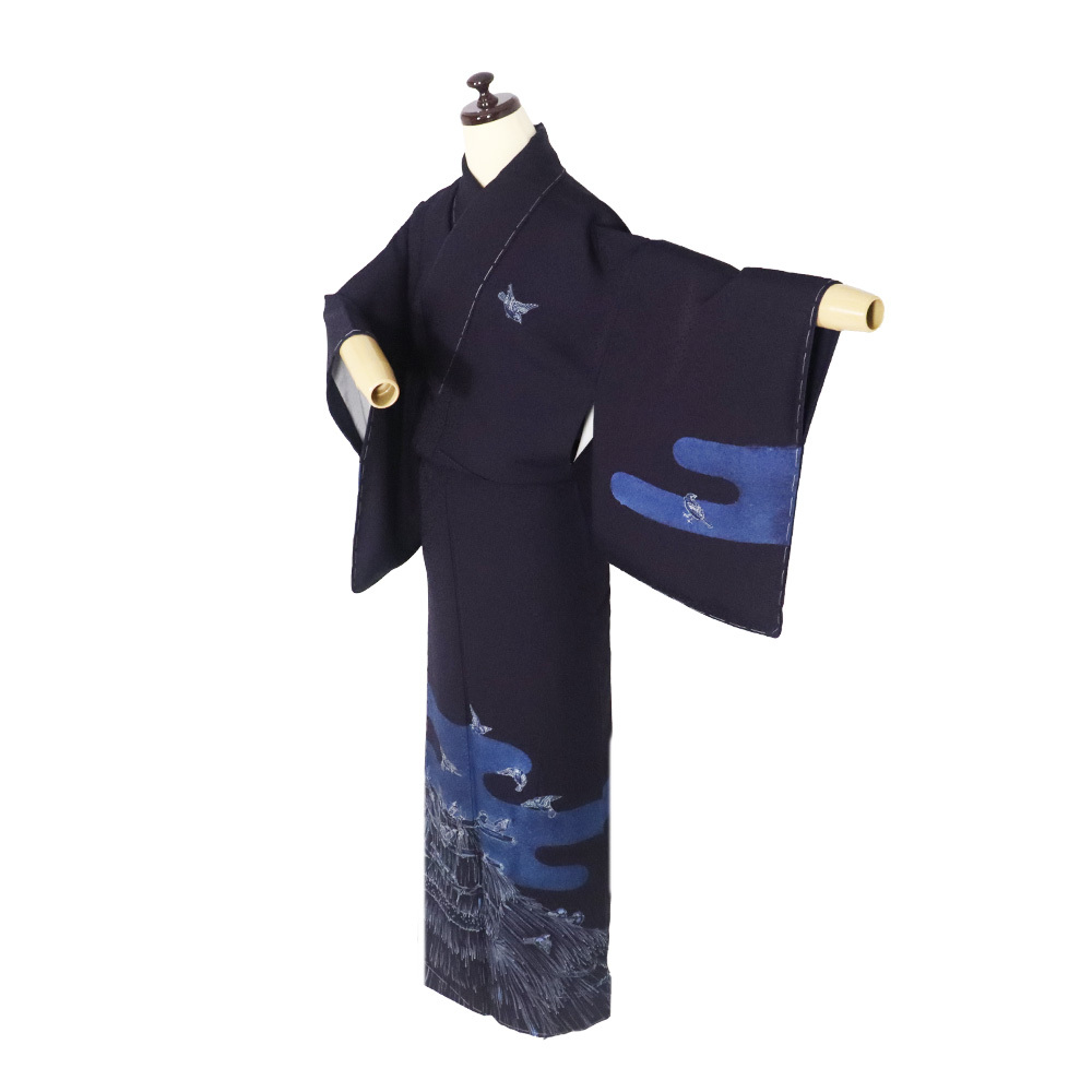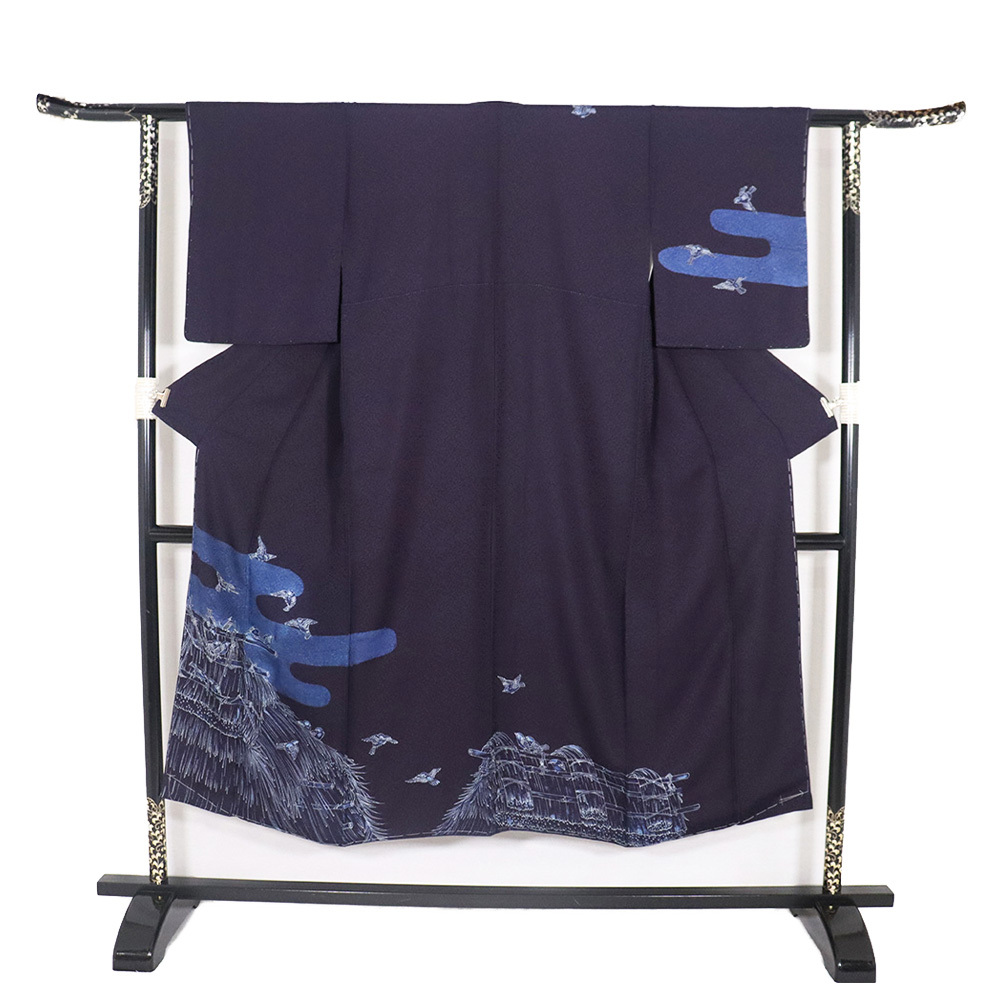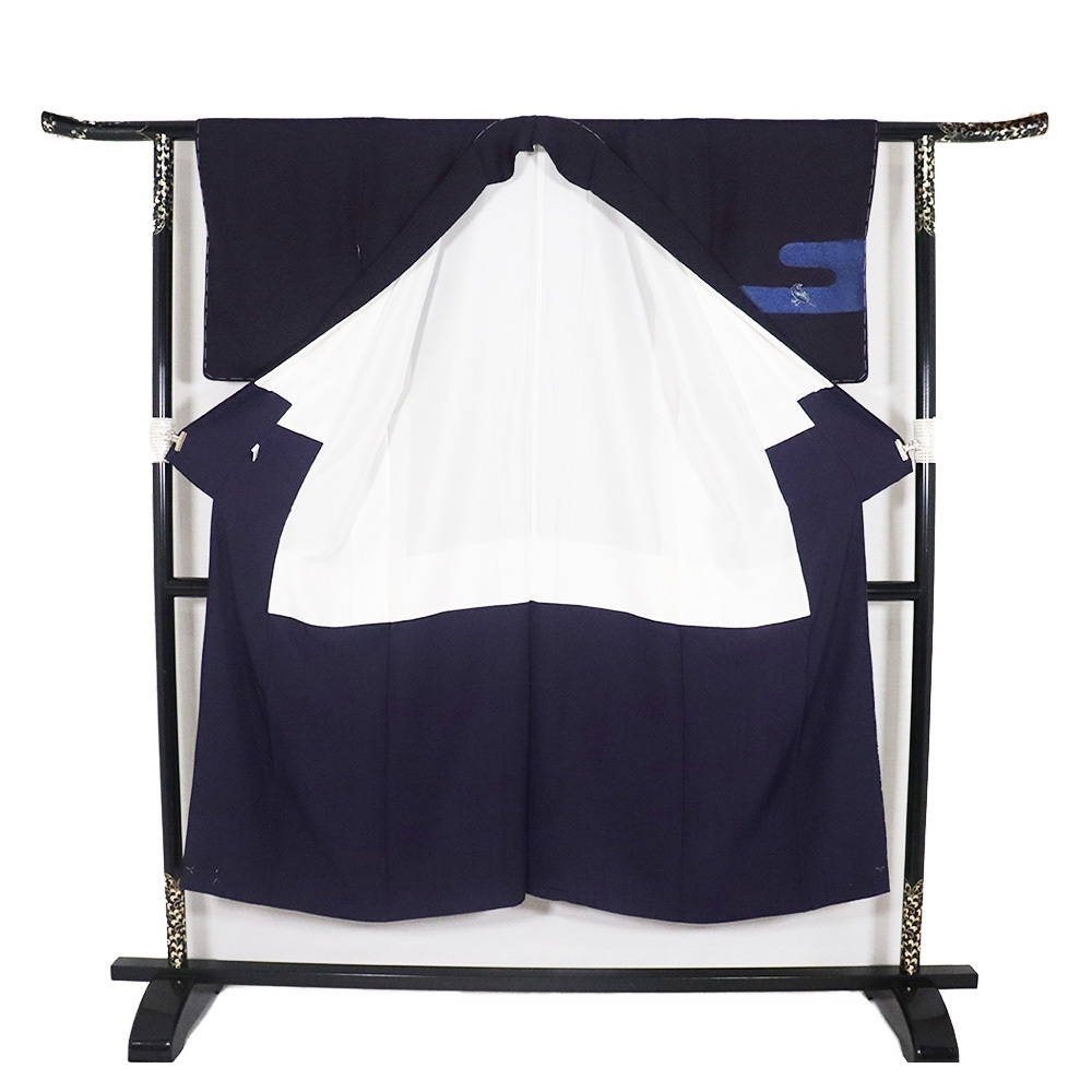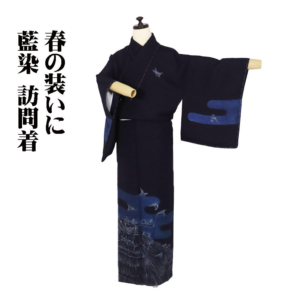 | 商品 | 藍染 佐藤阿波藍製造所 訪問着 袷 丹後縮緬地 濃紺(漆黒色)・紺(紺青色)・ 花蔓地模様地 スズメ 151 広襟 未使用品 仕付け付き |