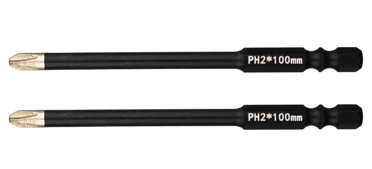 Bokuyoku ダイヤモンド黒曜ビット 防滑 強力食いつき W溝タイプ 日米インパクトドライバー対応 マグネット入り 6.35mm六角軸 電動ドライバービット 2本 (+2×100)
