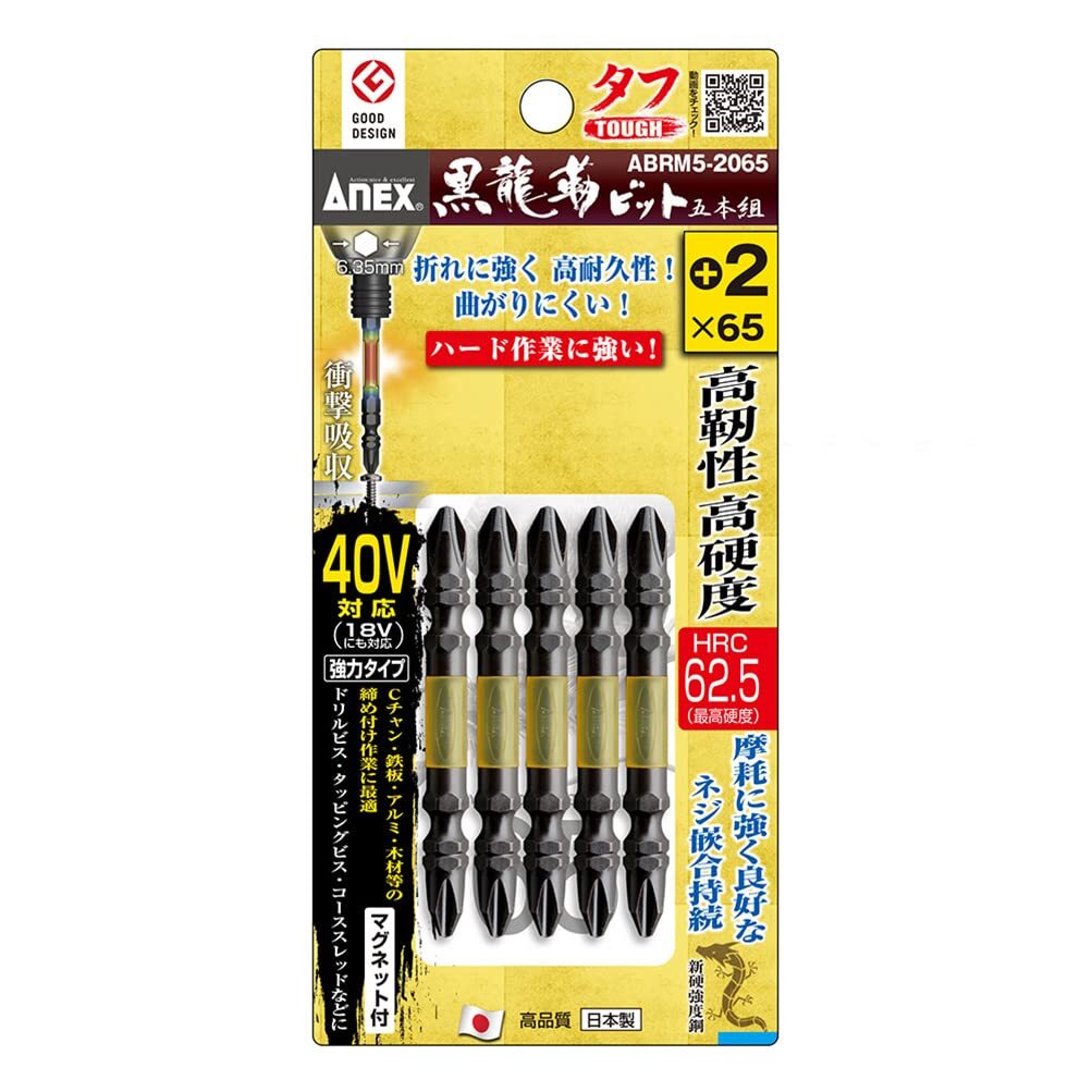 【在庫処分】両頭 タフ +2x65 黒龍靭ビット 5本組 アネックス(ANEX) ABRM5-2065