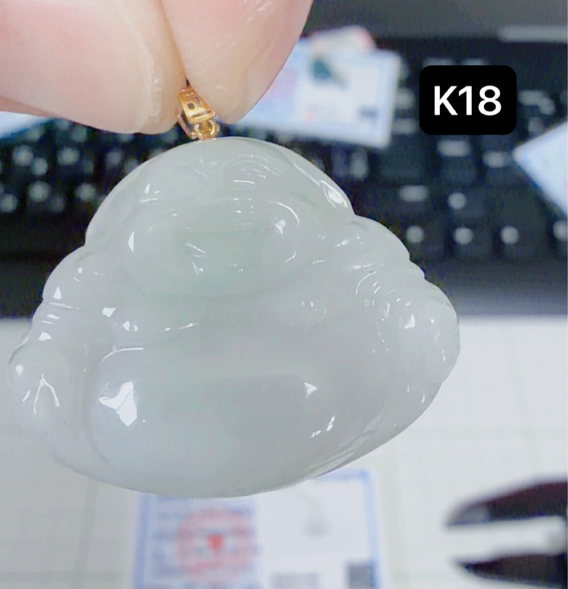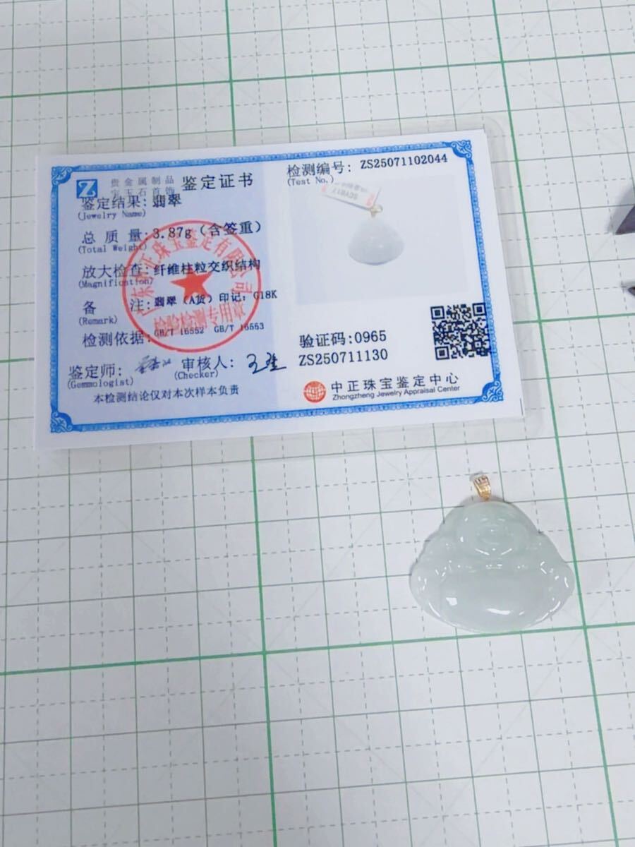 CS-0052天然本翡翠《本物保証》翡翠ペンダント K18 チェーンS925 一点物 希少 縁起物 ミャンマー産 パワーストーン 海外鑑定書付き