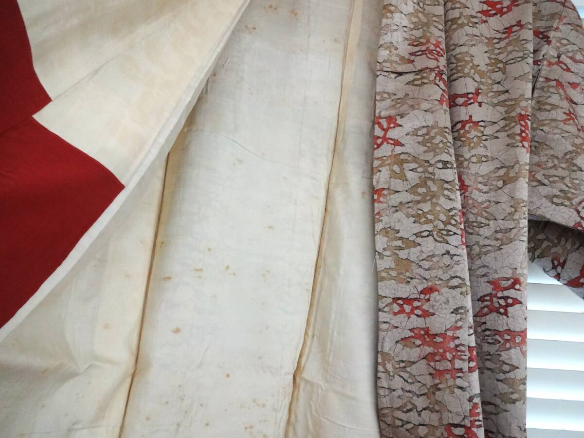 USED 柄物ベージュ 裏地赤色 着物 クリーニング済みですが長期保管になります★ 内側にシミがあります。 匂いなどが気になる方ご遠慮ください 画像でご確認ください★★。.:*:・'゜★。.:*:・'★。.:*:・'゜★。.:*:・' ★最初の落札から10日以内でしたら お取り置きも可能です★。.:★。.:*:・'゜★。.:*:・'゜ 他にも着物、帯や羽織を多数出品しておりますのでよかったらご覧くださいませ^^ 記載以外は目立つ汚れなどはありませんが、神経質な方はご遠慮ください。 ノークレームノーリターンです★ ●佐川急便 600円 ・定型外 ・佐川急便 北海道まで何点でも600円(沖縄、離島の方は別途かかります) ・同梱できるものは同梱可能です♪ ・送料は一番お安い方法にさせていただきます。 ・送料無料のものと同梱の場合は送料無料です♪ | |
