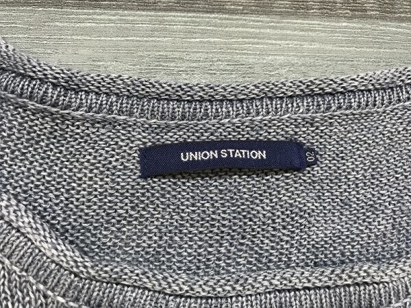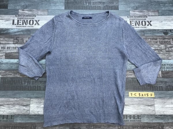 union station メンズビギ 七分袖 リネン ニットソー 02 くすみブルー です。