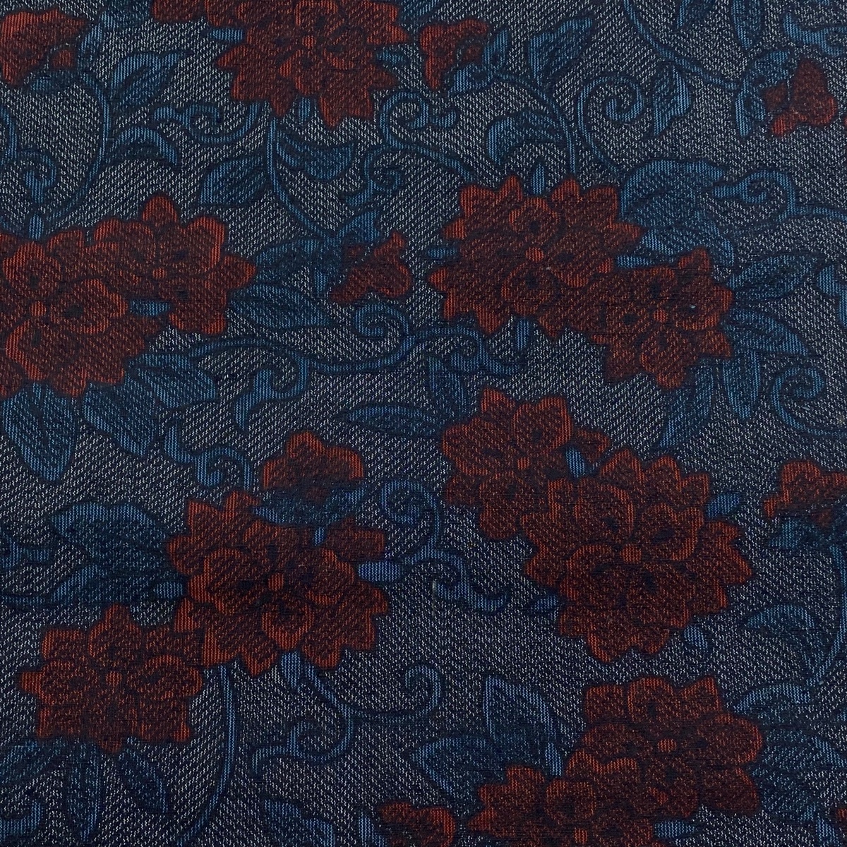 | 反物 秀品 紬 証紙 花唐草 黒 正絹 【中古】 |