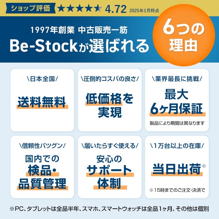 | 保証 | お届け日から6ヶ月の安心保証!万が一初期不良の場合でも無償で対応いたします。 |