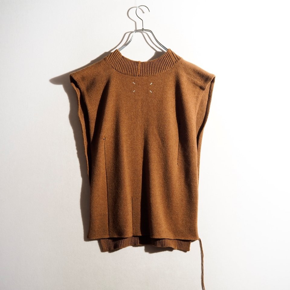R0052P ▼Maison Margiela 1 メゾンマルジェラ▼ ダメージ加工 タバード ニットベスト ブラウン S / S51TH0072 ウールニット 秋冬 rb mks