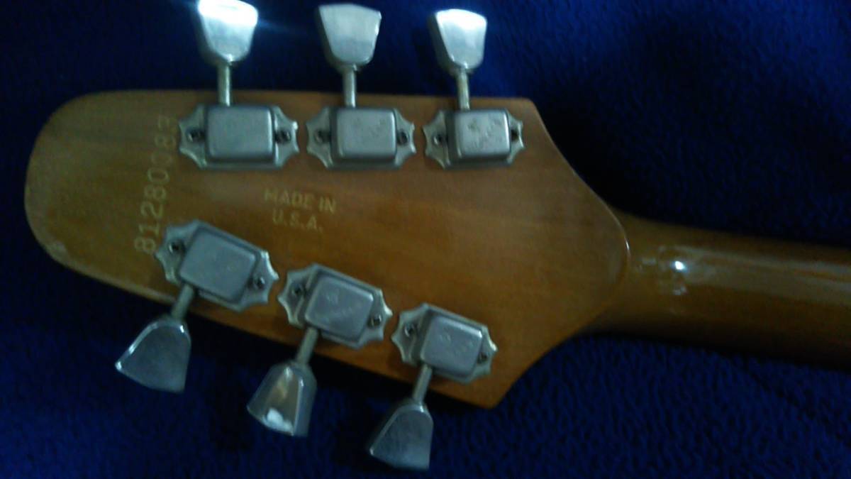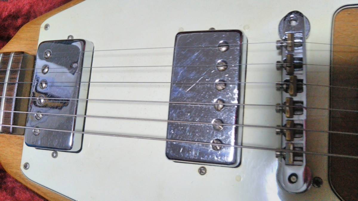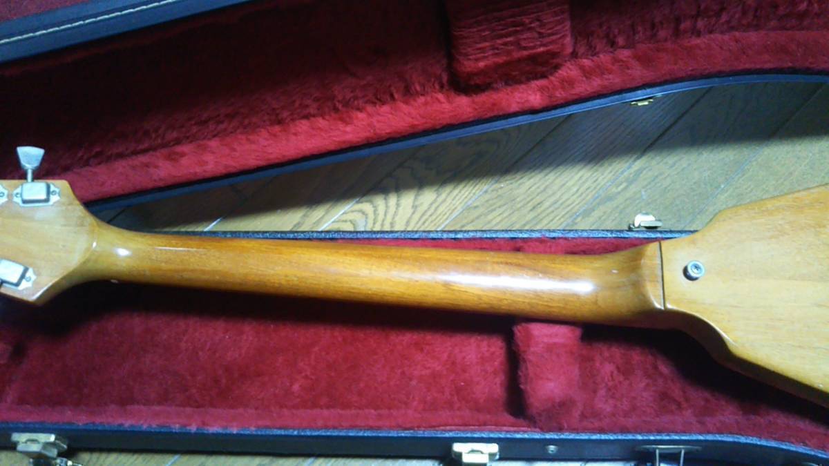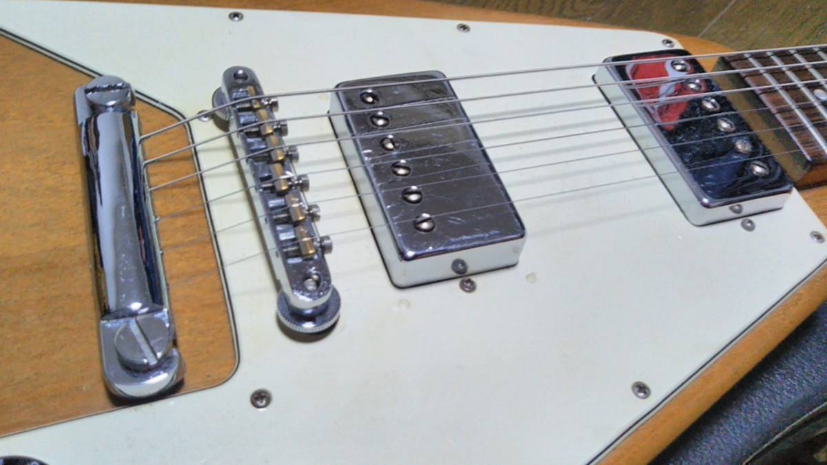 ★1980年製 Gibson フライングV ◆2Pマホガニーボディ。マホガニー材では珍しくかなり杢目がキレイに出た美しいレア・ギターです。この年代でのマホガニー材でも珍しい良材ですが、現行品のマホガニー等とは比べ様もない程の素晴らしい材です。●Pガードに以前にリアPU周りにエスカッションを付けたネジ穴跡があります(キレイに埋めてタッチアップしてありますので、少し離れて見ると目立たないと思われます※画像参照)他には、ネック周りやアッセンブリー関係を含むリペア跡やパーツ交換等は無いと思われます。又、楽器としての不具合もないと思われ、御落札後もリペア等の必要性もないかなりのGOODコンディションと思われます(年代なりの使用感や傷、バックルウェア(※画像参照)等はございます。それ故、ヴィンテージギター、中古ギターをよく御理解している方のみ御入札下さいます様お願い申し上げます)超軽量約2.98㎏!!OHケース付き。●いかなる場合もノークレームノーリターンでお願い致します。又、御落札後、24時間以内に御連絡、2日以内に御入金、商品到着後の当日中に速やかに御連絡可能な方のみとさせて頂きます。新規の方、日本語の通じない方もお断りさせて頂きます。