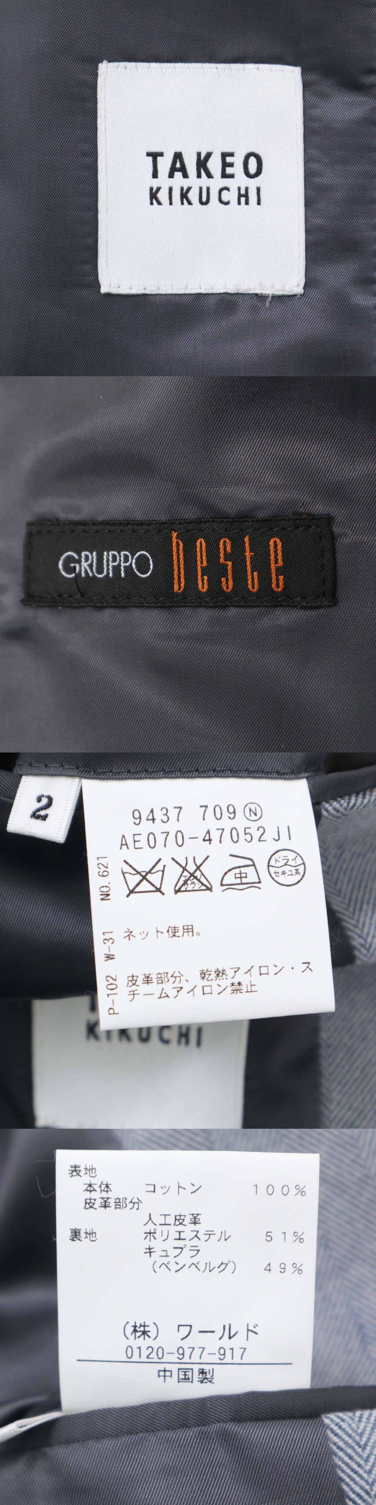 TAKEO KIKUCHI タケオキクチ GRUPPO beste 秋冬★ ヘリンボーン シングル ジャケット Sz.2 メンズ グレー